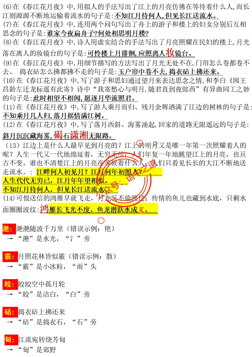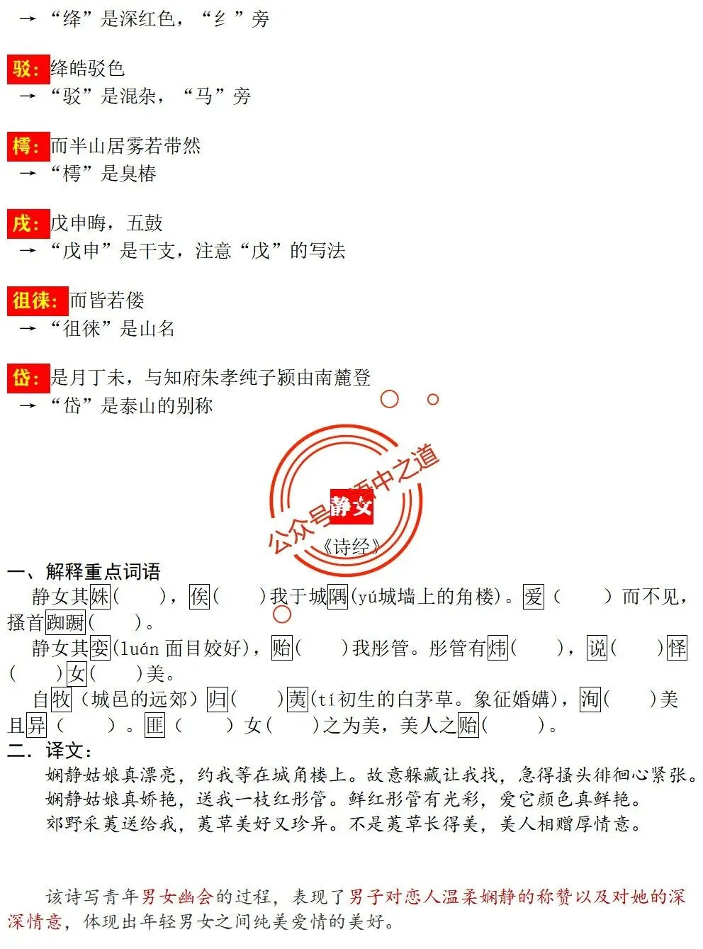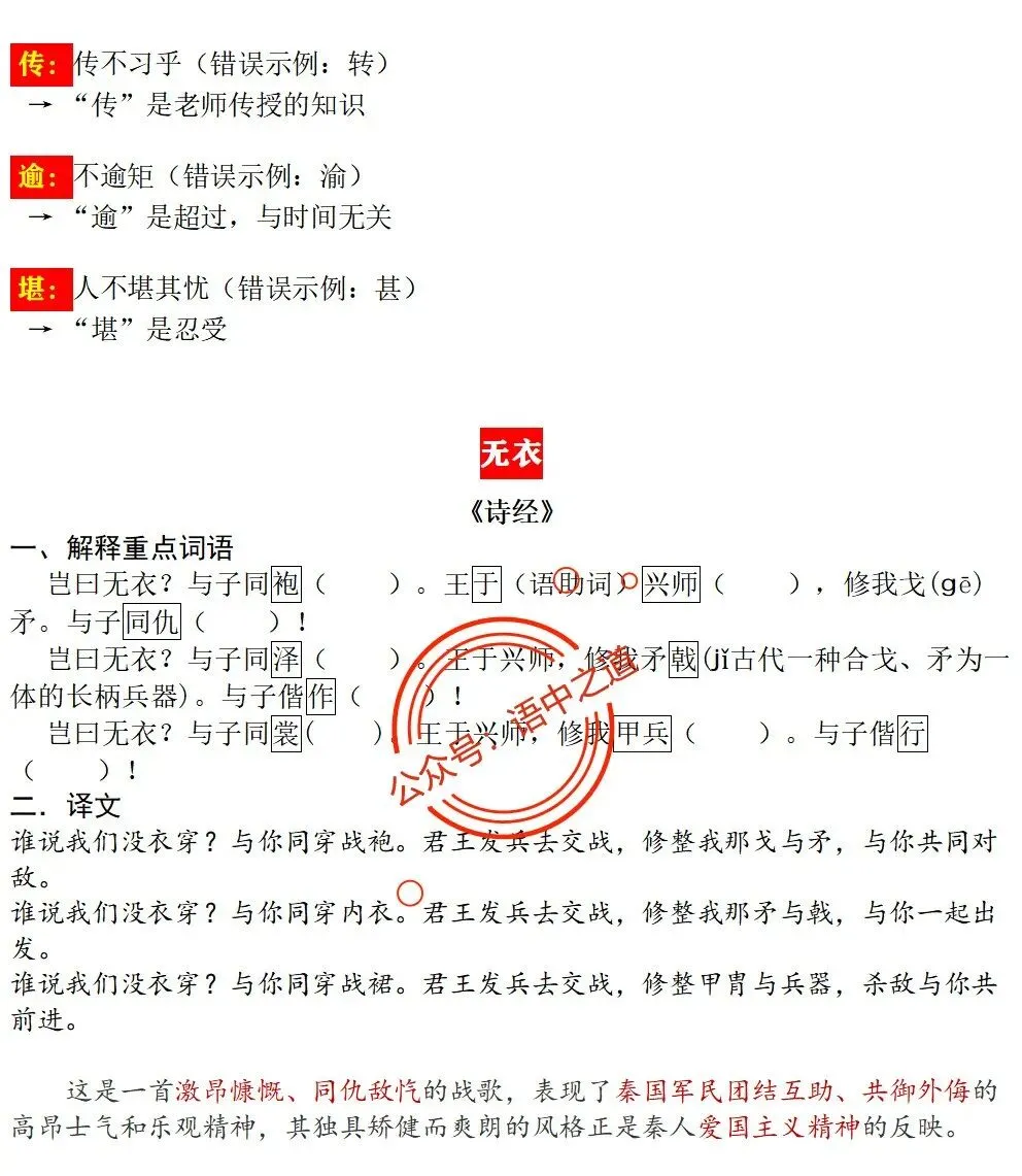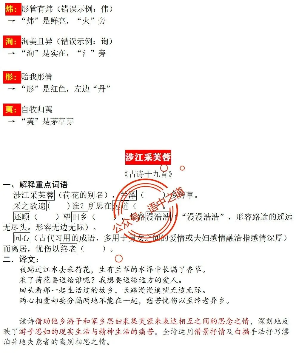 统编【全5册】古诗文【情感+易错字】【教师版+学生版】