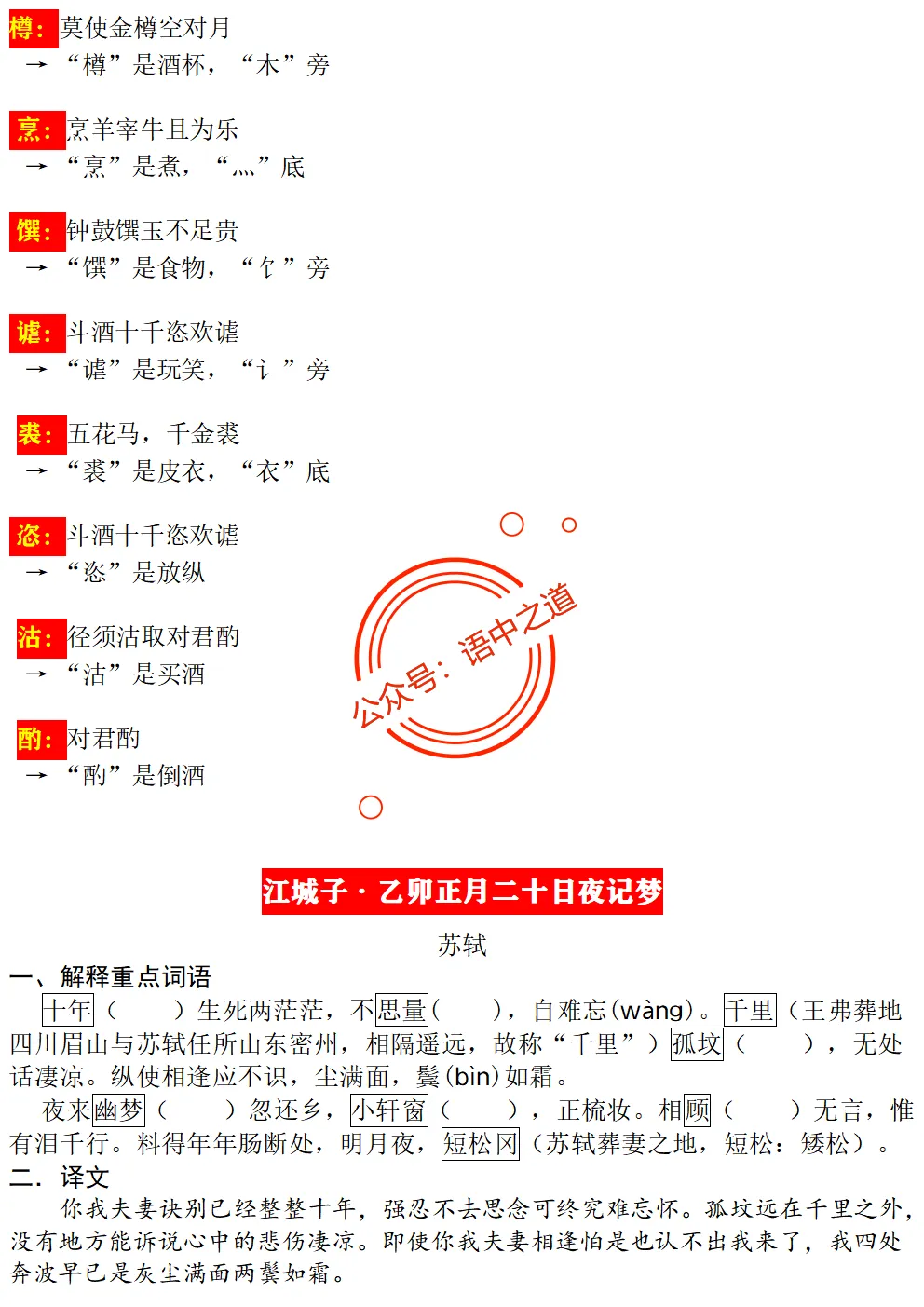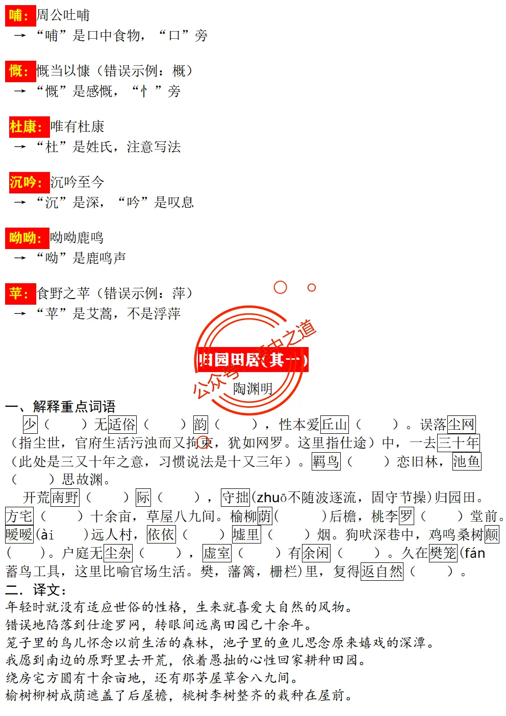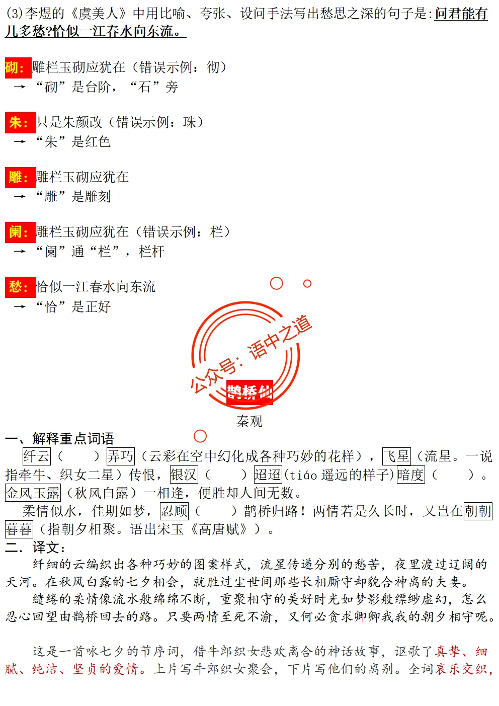 统编【全5册】古诗文【情感+易错字】【教师版+学生版】