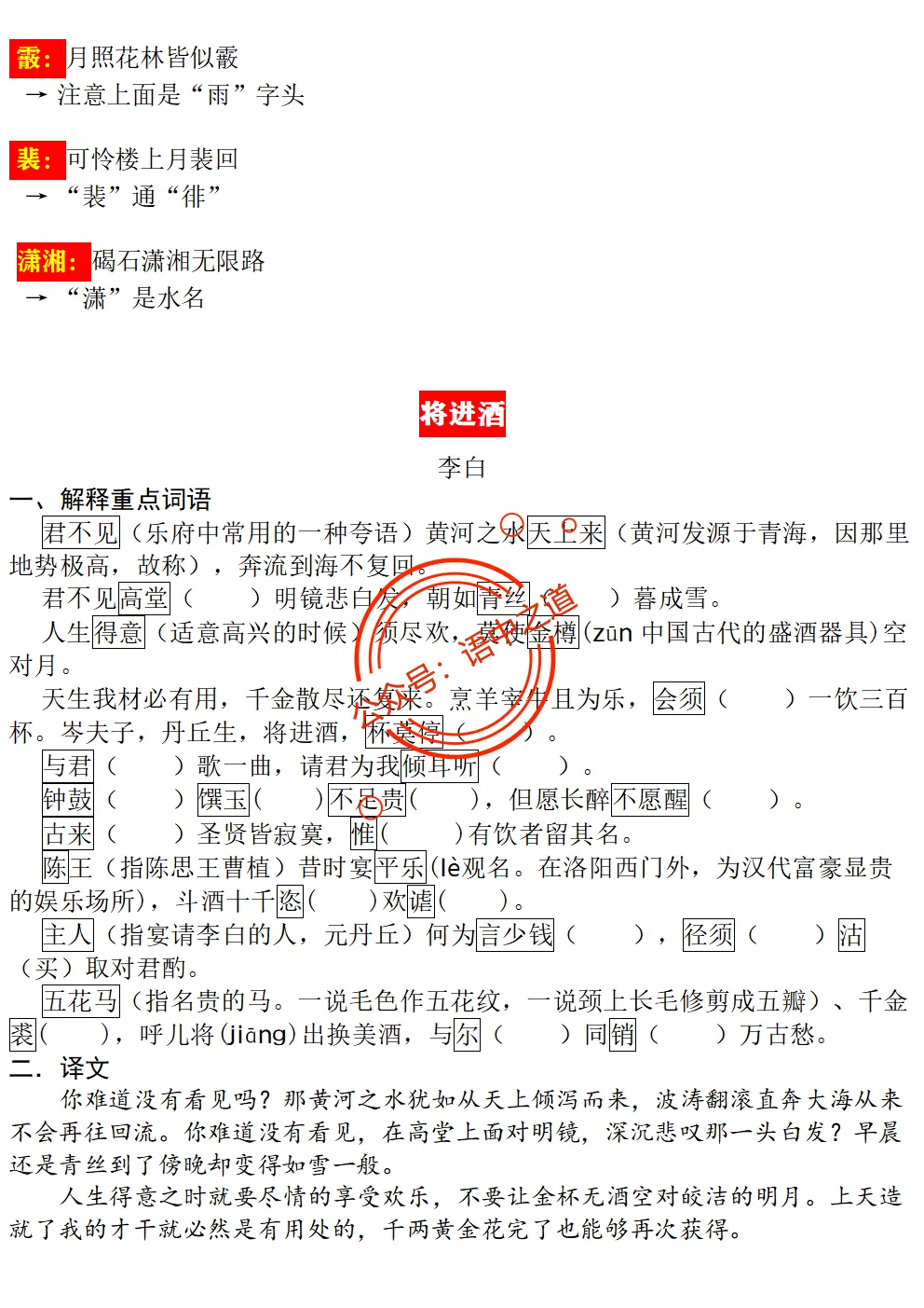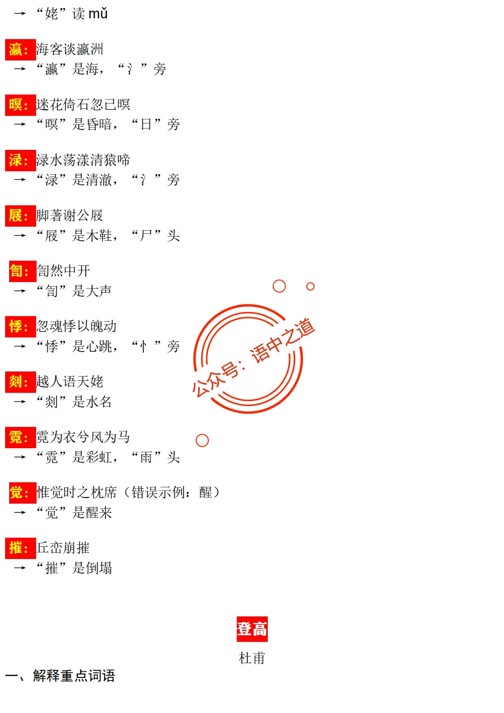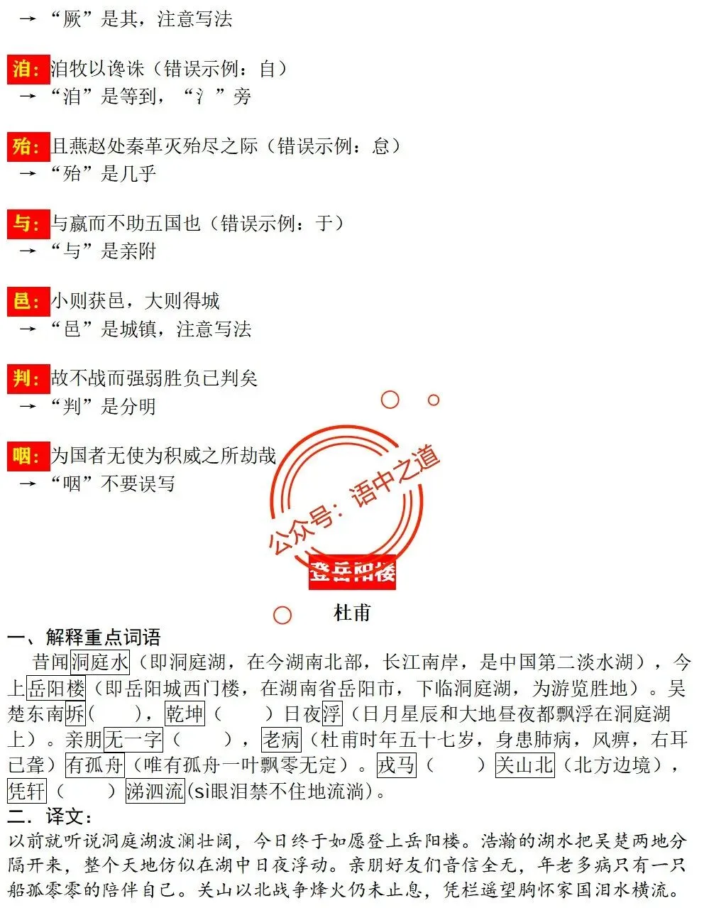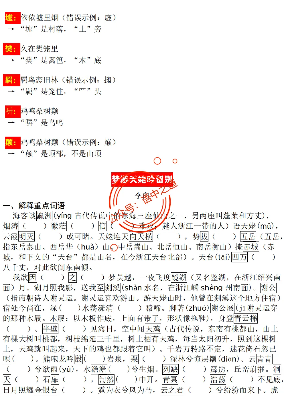 【扫除盲点】高中语文统编教材【全5册】古诗文【思维导图式精解+易错字红笔标注解析】【教师版+学生版】