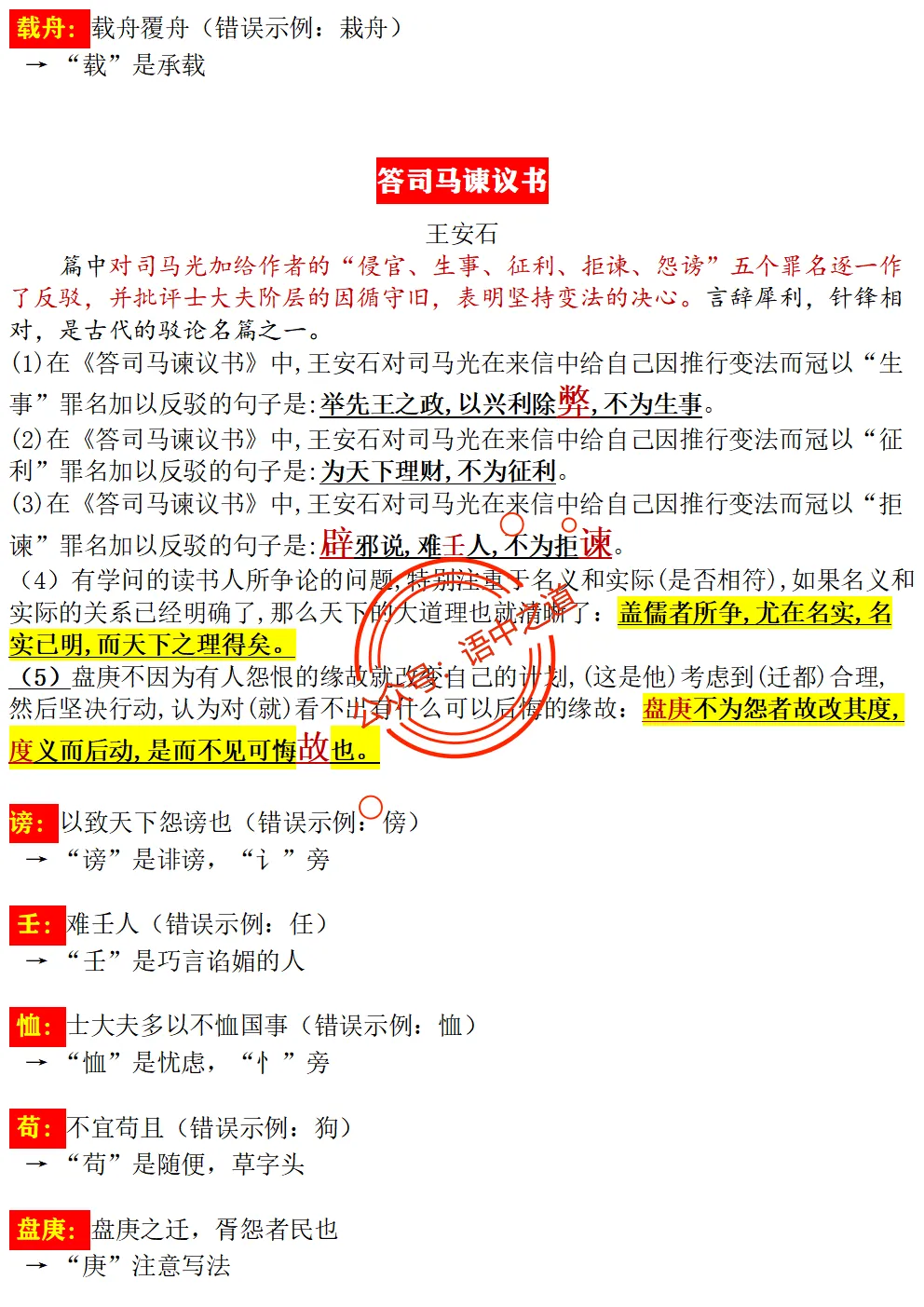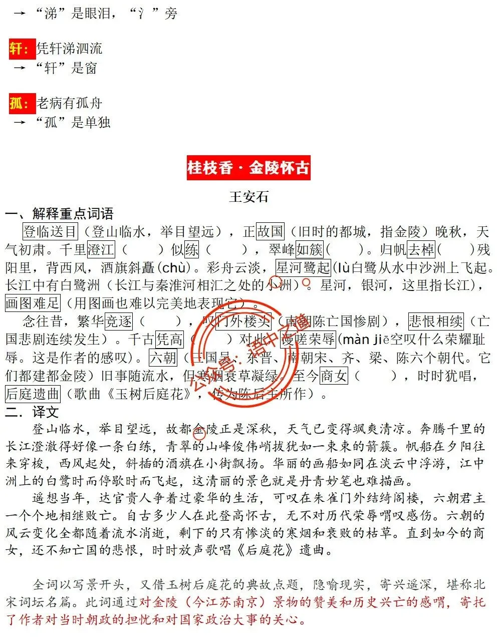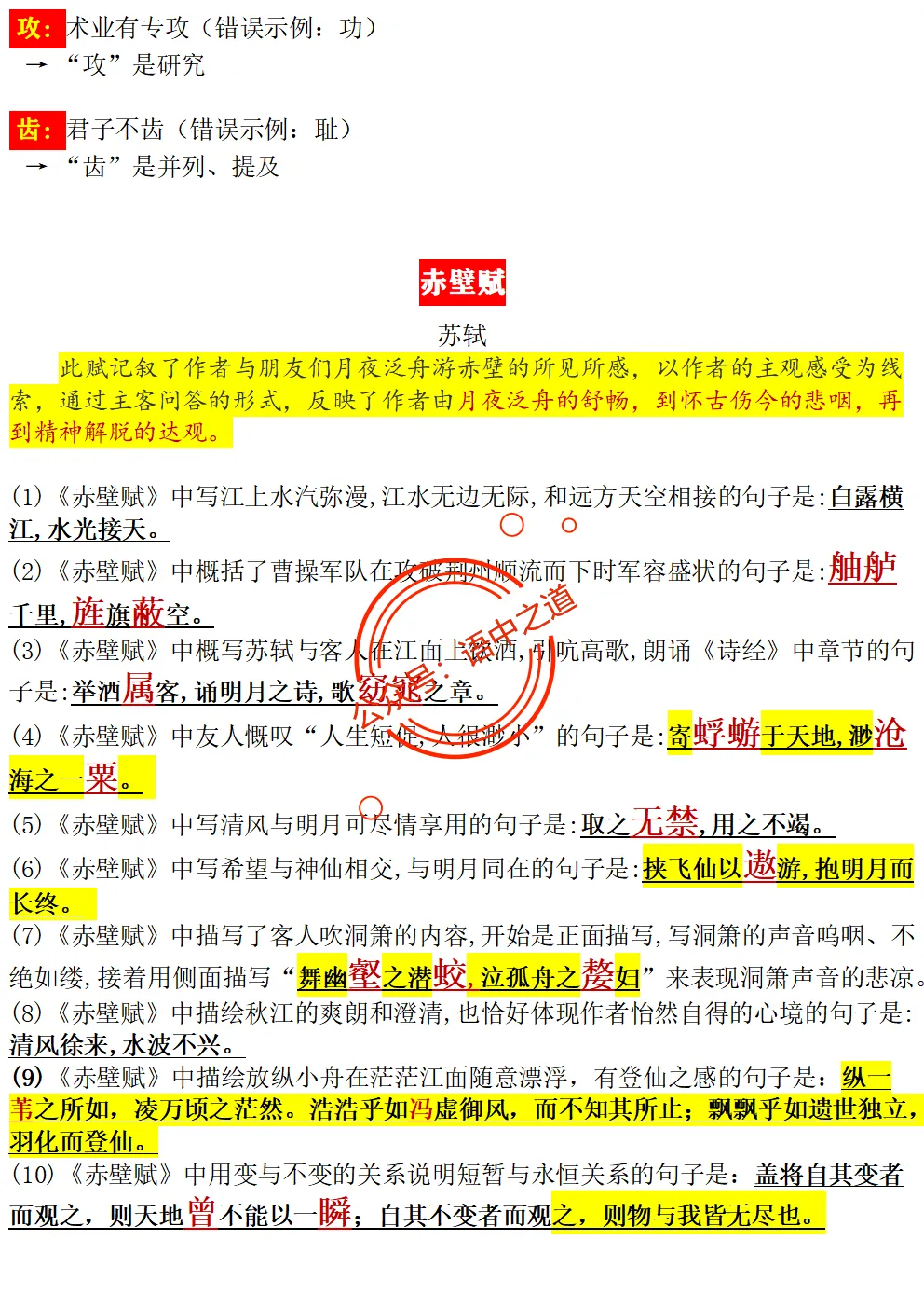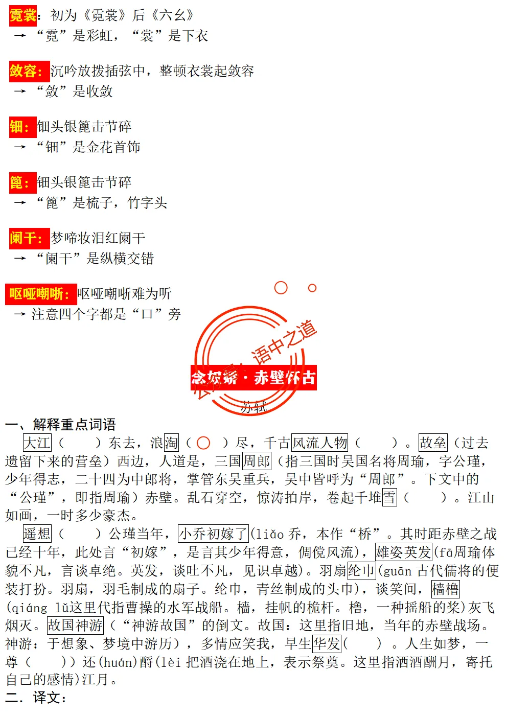 【扫除盲点】高中语文统编教材【全5册】古诗文【思维导图式精解+易错字红笔标注解析】【教师版+学生版】