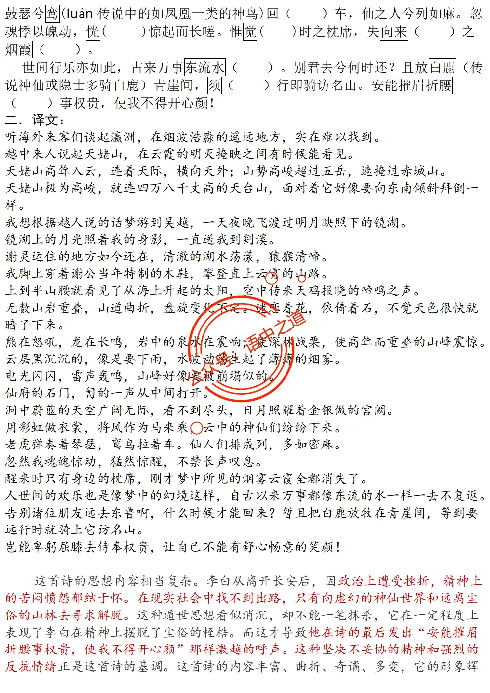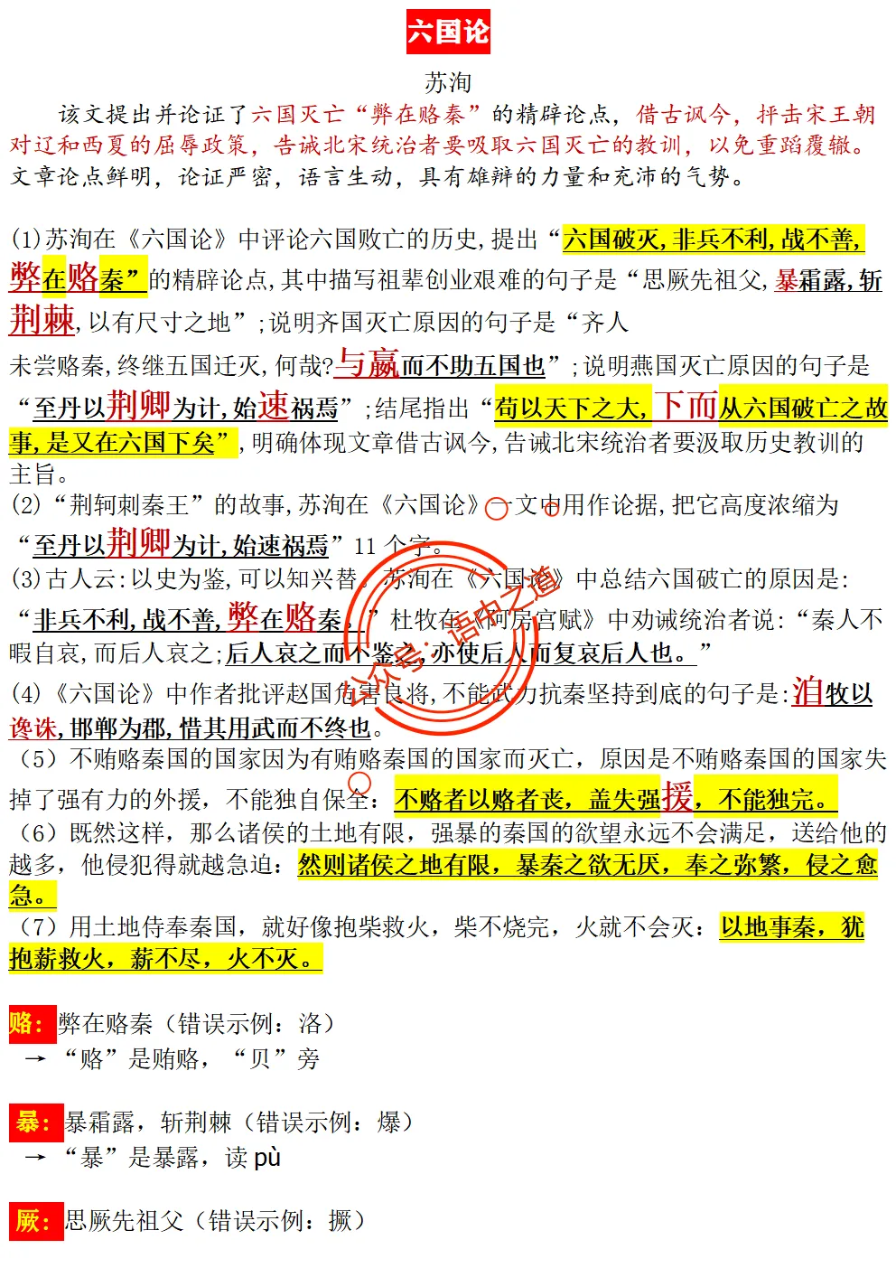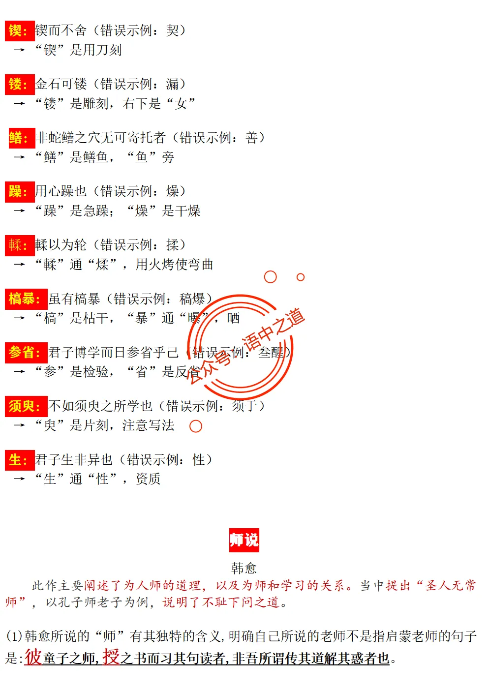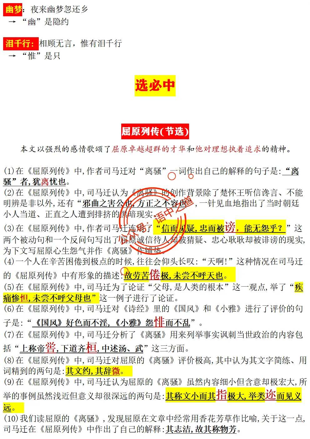 【扫除盲点】高中语文统编教材【全5册】古诗文【思维导图式精解+易错字红笔标注解析】【教师版+学生版】