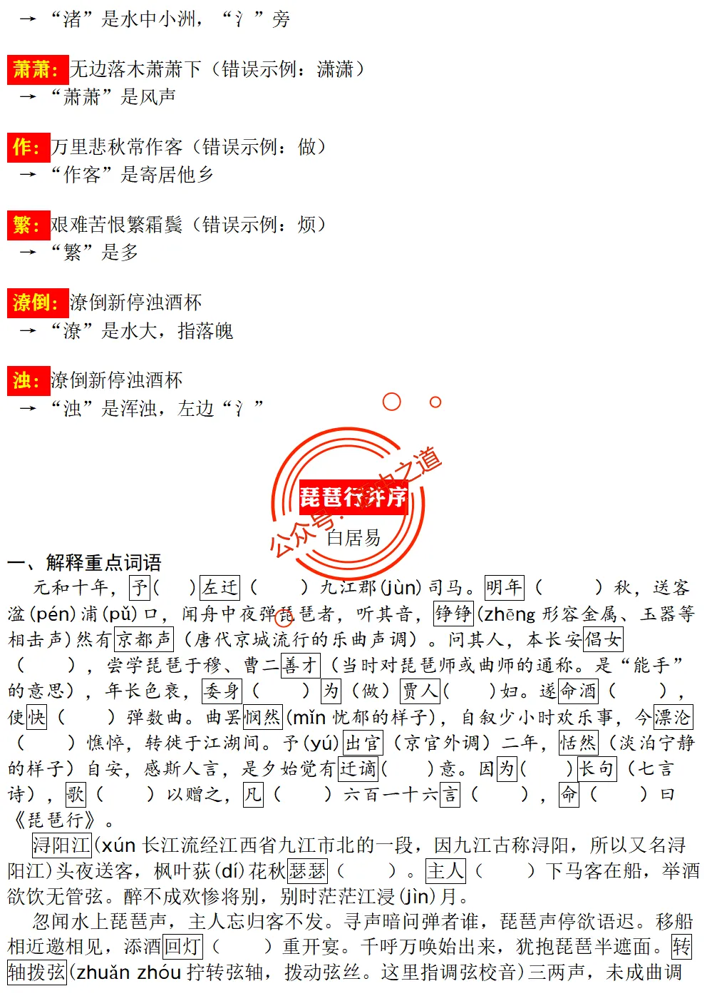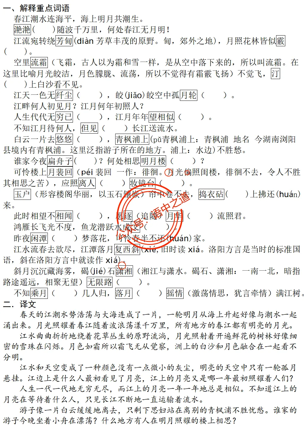 统编【全5册】40首古诗词【易错框选+重点词阐释+挖空】