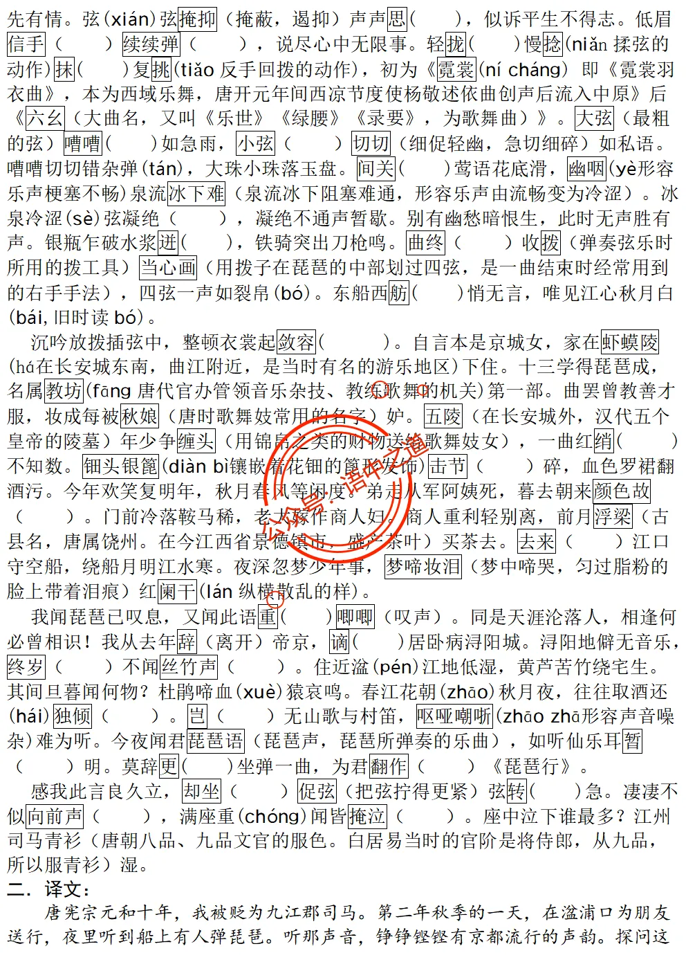 统编【全5册】文言挖空全集(非背诵+背诵篇目)(师生版)