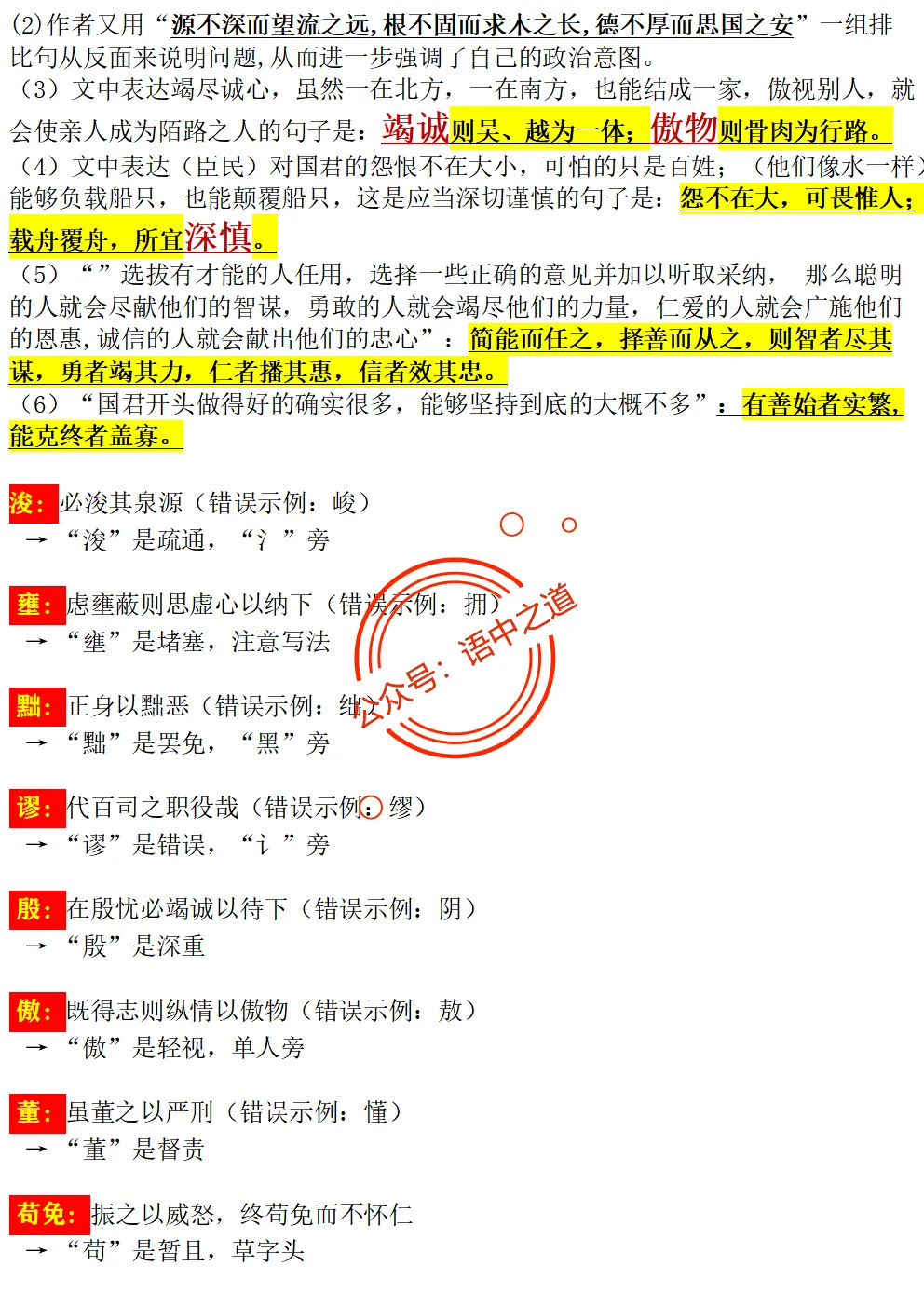 【知识清单】语文知识多板块梳理【成语+谦辞+病句+】