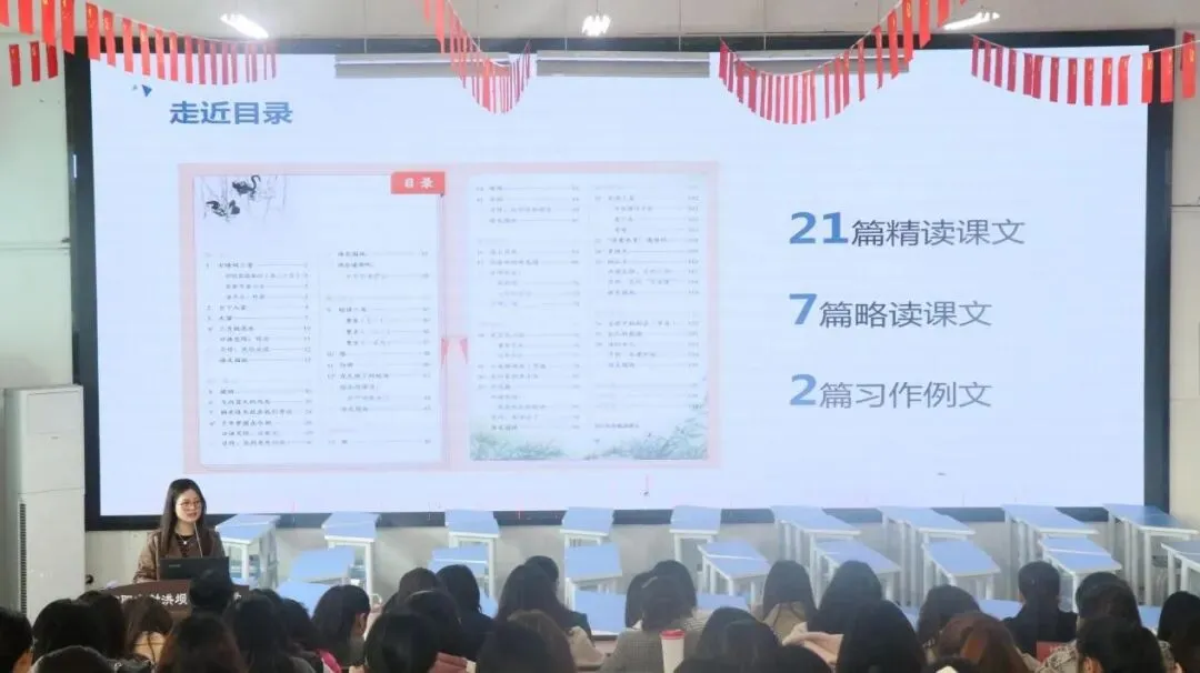 简阳市教育研究培训中心小学语文教研员万琴老师作《统编小学语文四年级教材解读》专题讲座。她从教材编排体系入手,解析双线组元结构与单元逻辑关联,结合具体单元阐明各板块联动的教学链条,并解读“精读—略读—课外阅读”三位一体阅读体系。万琴老师指导教师提炼语文要素、设计真实任务,推进阅读与习作教学及教学评一体化,助力教师实现从“教课文”到“育素养”的转变,精准把握中高段衔接的教材育人价值。