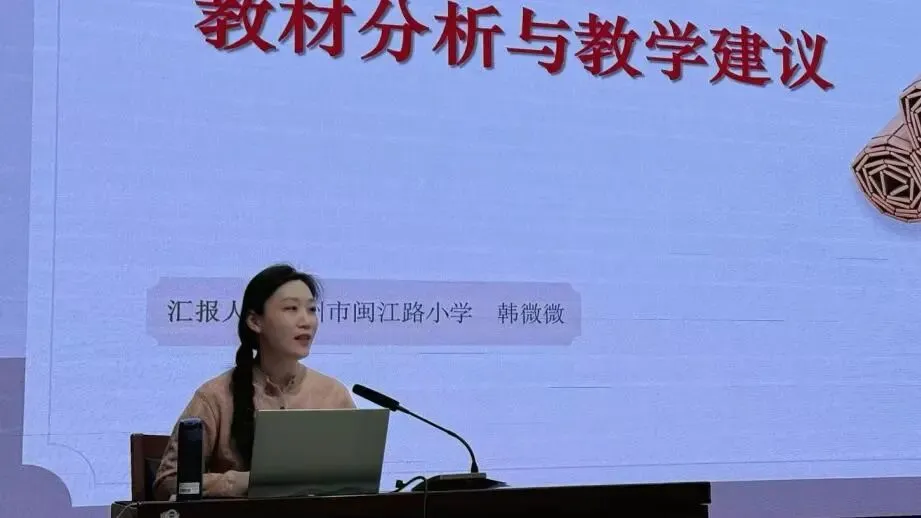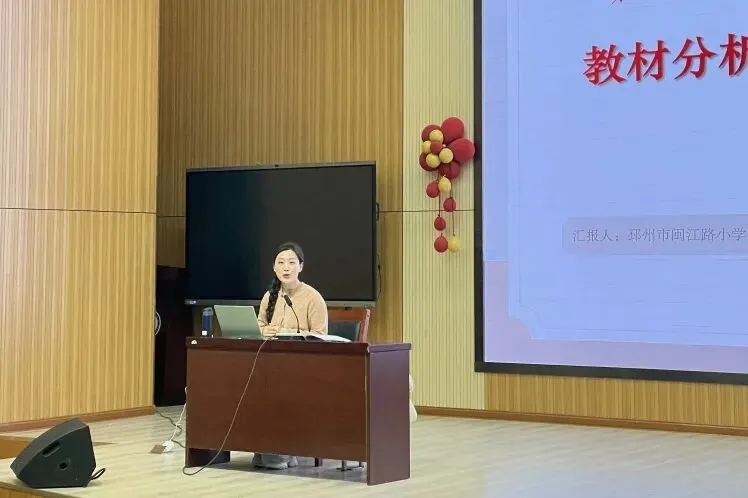 随后,邳州市闽江路小学数学教研组长韩微微老师作《苏教版小学数学教科书 二年级下册教材分析与教学建议》专题报告。韩老师聚焦二年级下册教材的整体架构与实施要义,系统解读了新教材在数与代数、图形与几何、统计与概率、综合与实践四大领域的编排逻辑。建议从“厘米和米”的长度测量教学中,引导学生在真实情境中比较和测量物体的长度,感受度量单位的价值,发展量感和空间观念;在“数据分类(二)”教学中,引导学生认识逐层分类的特点,体会层层递进的思考;在“简单的数量关系(二)”教学中,打通“倍”与“几个几”的意义通道,感悟“倍”与乘法算式的关联,深化对倍数关系的理解。