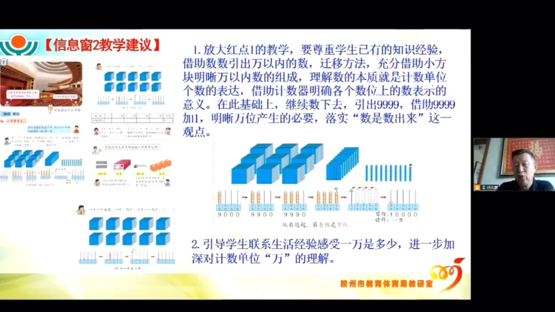 二年级老师们认真聆听专家解读,细致记录新教材修订重点、内容变化及教学实施建议。新教材更加注重知识迁移与直观感知,以“万以内数的认识”为例,教材借助小方块、计数器等学具,引导学生从千以内数的知识出发,在“数一数”“拨一拨”的操作中,自主感悟数的组成与计数单位“万”的产生,真正落实了“数是数出来”的核心观点,让二年级学生从做中学,在动手实践与生活感知中,轻松掌握数学知识,提升核心素养。