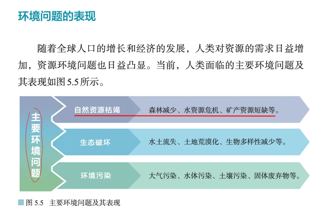 把一部分环境问题又拆分到选择性必修二,主要讲生态问题和资源枯竭
