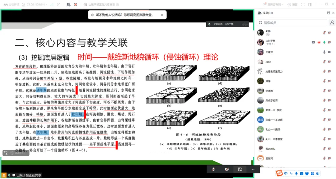 本次活动以"大学教材《现代地貌学》精读、核心章节解读,及其与高中地理教学、高考命题深度衔接"为主题,旨在破解地貌教学难点、高考高频考点,提升教师学科理解深度与课堂转化能力。
