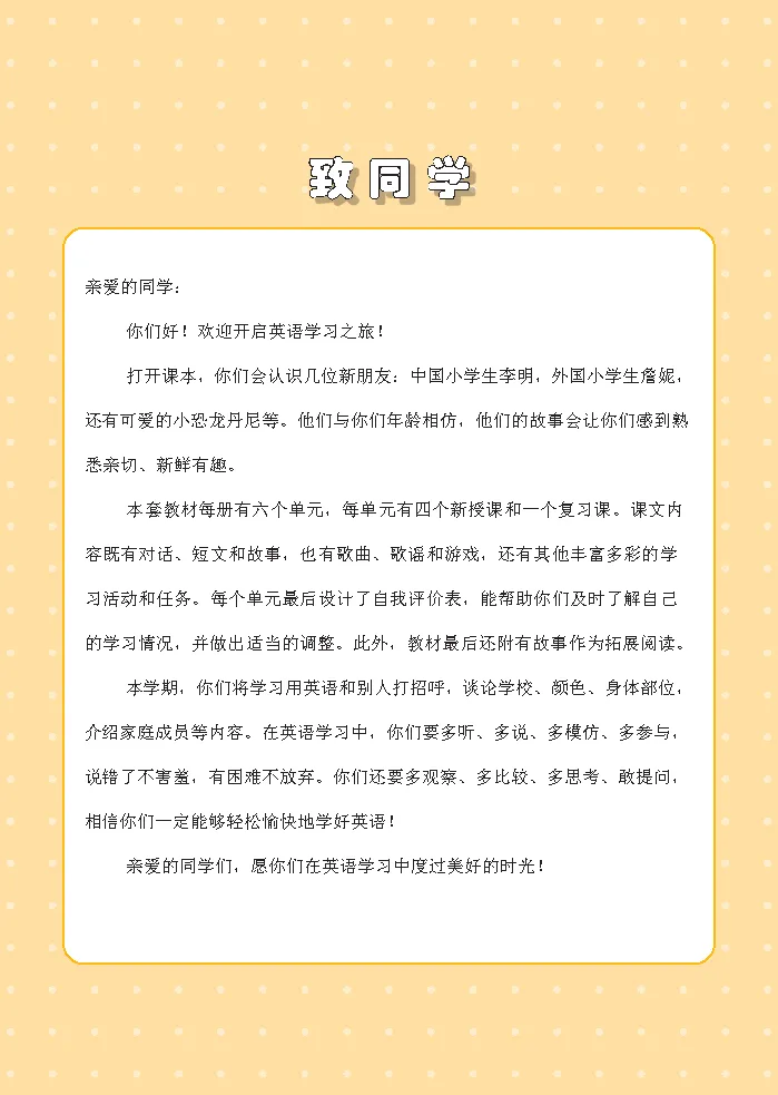 2026 秋冀教版三年级英语上册(三起)新教材,以问候、校园、颜色字母、朋友、自我、家庭6 大生活主题为核心,侧重听说启蒙、字母认读、基础句型,搭配歌曲、游戏与故事,贴合三年级入门学情,河北全省小学通用。