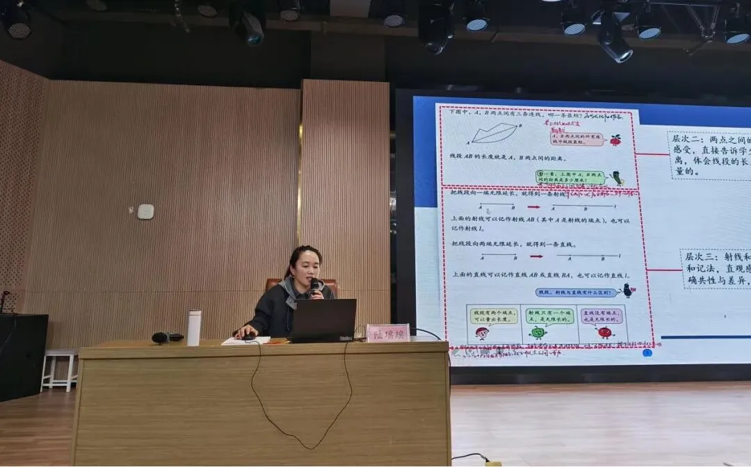 培训现场,陆瑶瑶老师立足新课标核心要求,结合三年级学生的认知规律与学习特点,以“逐单元、逐例题、逐练习”的细致模式,对新教材进行了全面系统的梳理与解读。她紧扣教材编排逻辑,精准拆解各单元教学目标、核心知识点及数学素养落点,针对每道例题的设计意图、教学重难点、学生易错点进行深度剖析,结合一线教学实际案例,给出了具体可操作的课堂教学策略、例题讲解方法及练习设计指导,将教材编写思路与课堂实施路径紧密结合,让参训教师清晰把握教材内涵,明确教学方向。