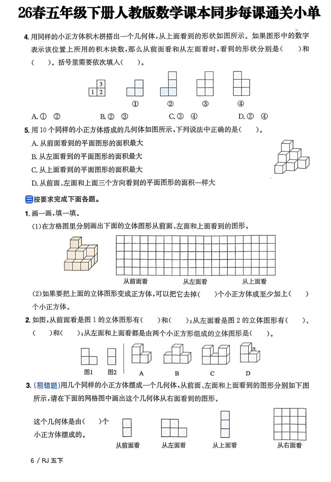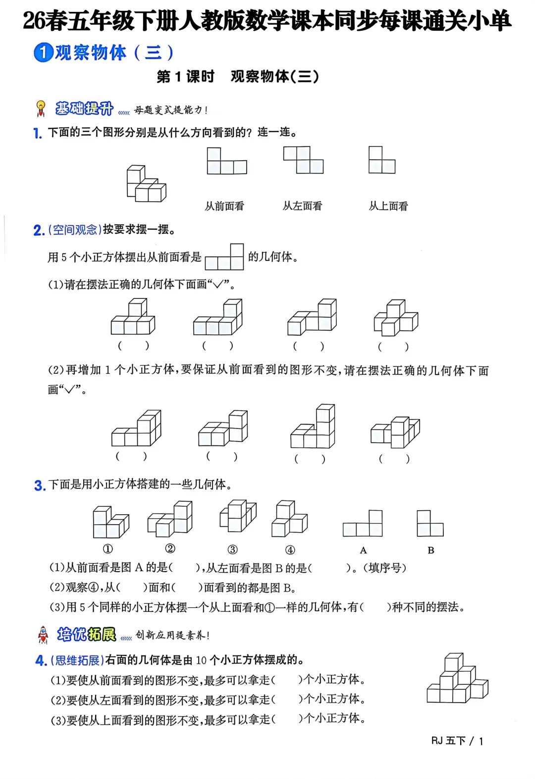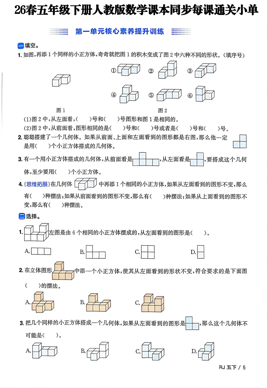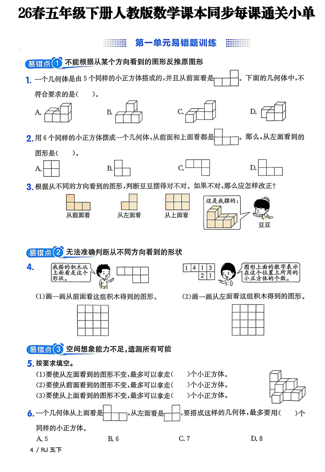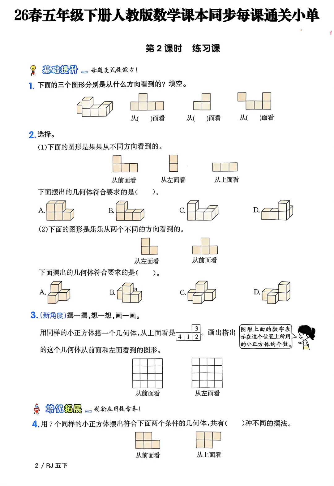2026 春人教版五年级下册数学来啦🔥课本同步每日通关小单,一课一练,基础 + 重点全覆盖💡题型经典、题量适中,含完整答案,家长批改超省心📝每天 10 分钟,巩固课堂知识,预习复习两不误💯可打印直接用,新学期数学稳步提分!