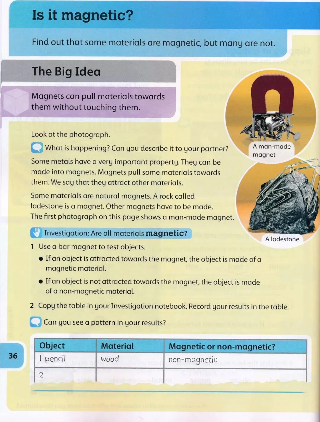 如,三年级的物理课“Materials”(物质属性),其中讲到“磁力”。从提问出发(怎么看出来一样东西是否有磁性?)...