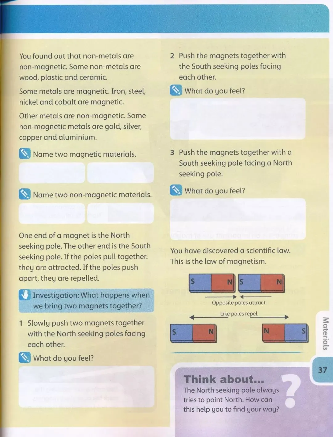 这就是科学方法的简练却完整的体现。所以,跟着这样的教材,重点并非去记住“磁力定律”这样的定律,而是在实践中学习“获取并运用科学知识”的方法。这种收获,可以说是“无价”的。