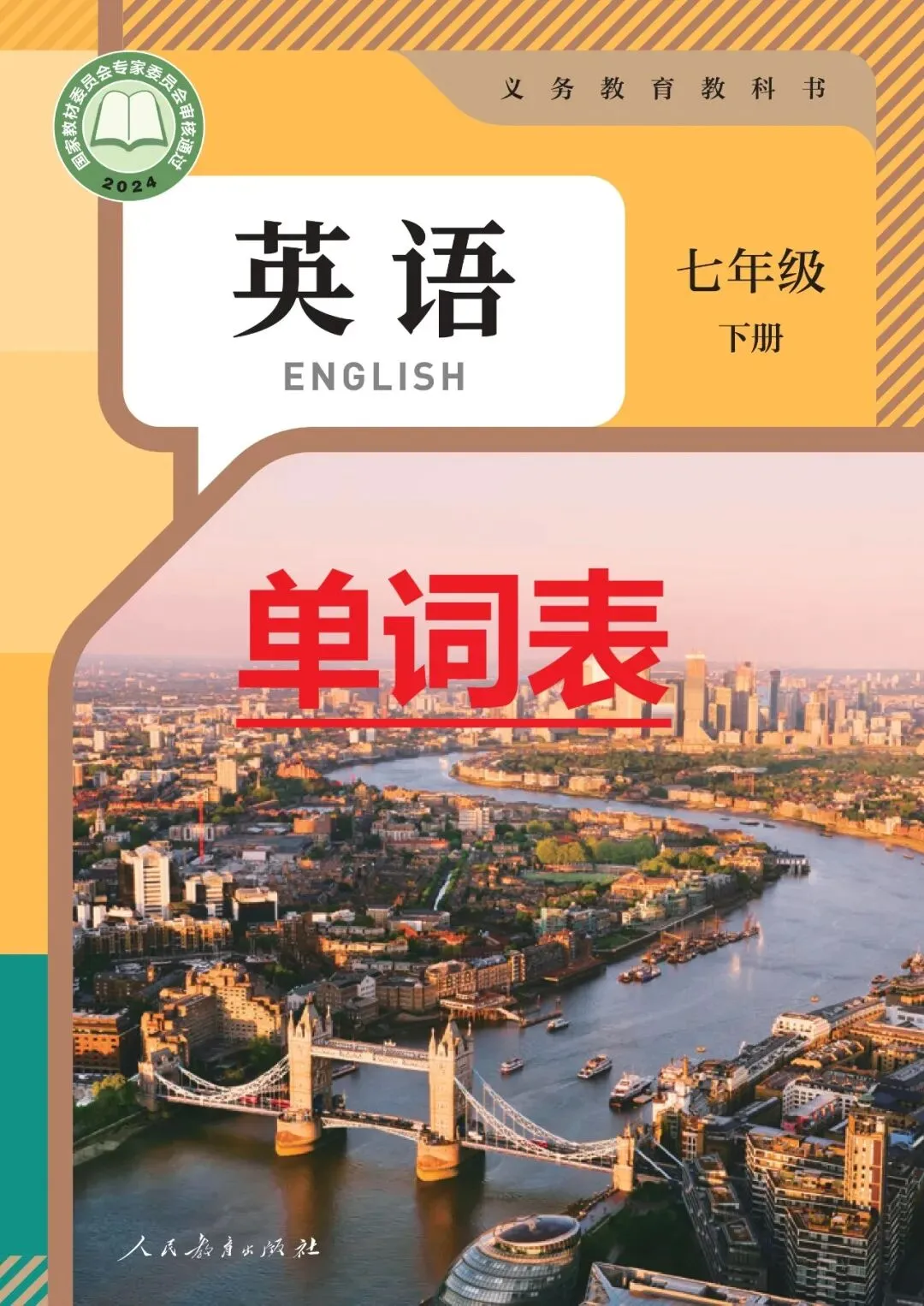 人教版初中英语七年级下册电子课本教材+单词表+单词默写表+听力音频完整版(2026年新版教材),可下载打印!
