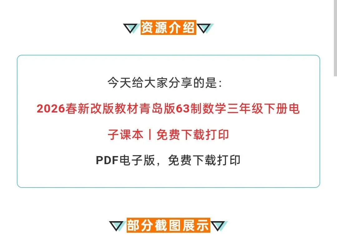 >【小学】2026春新改版教材青岛版63制数学三年级下册电子课本|免费下载打印