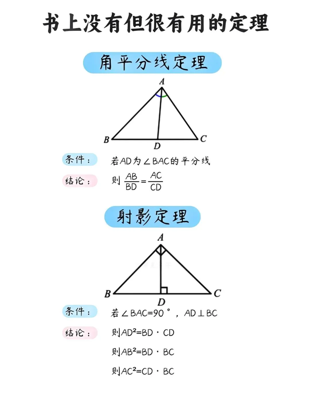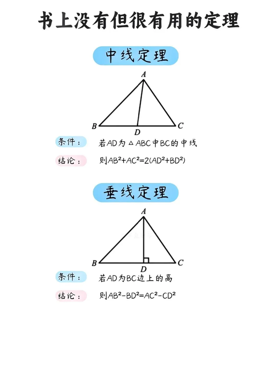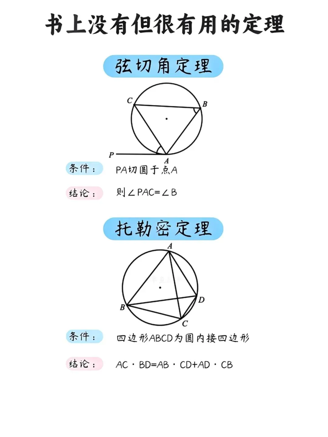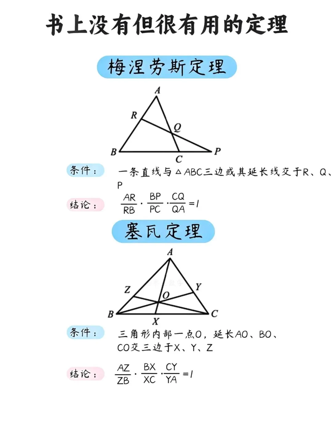 很多同学在解几何题时常常卡壳,明明思路清晰,却苦于计算繁琐。其实,掌握几个课本之外的"隐藏技能",能让你事半功倍。今天就为大家整理了几条超实用的几何定理,建议收藏备用。