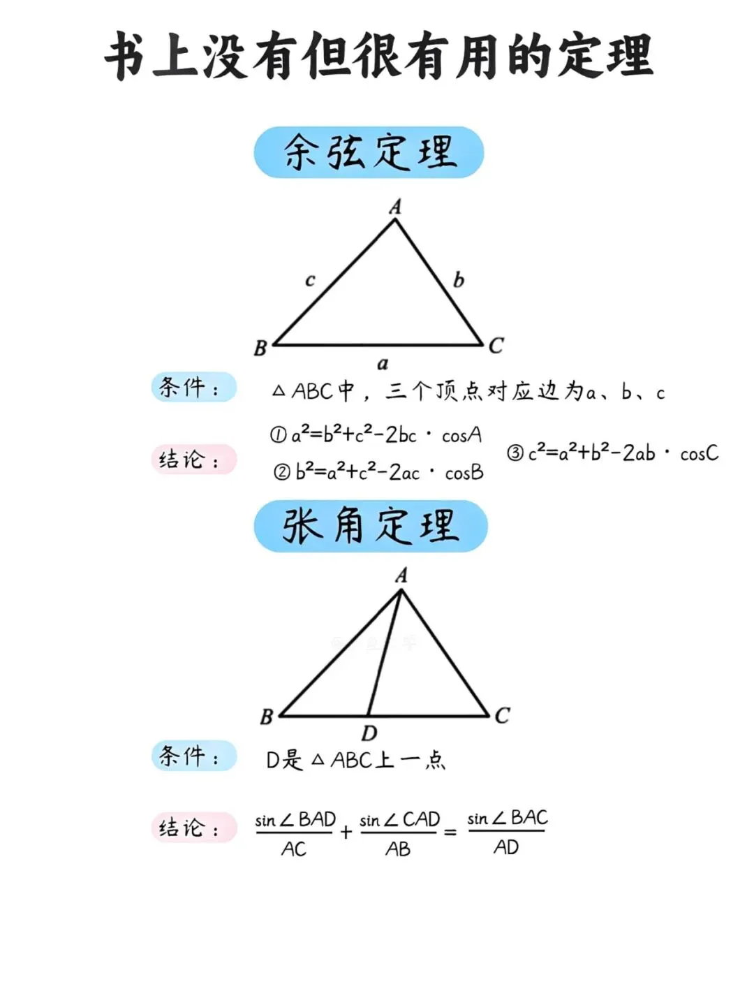需要提醒的是,这些定理在选填题中可以直接使用,但解答题建议先给出简要证明。平时多积累,考场上才能灵活调用,真正提升解题效率。