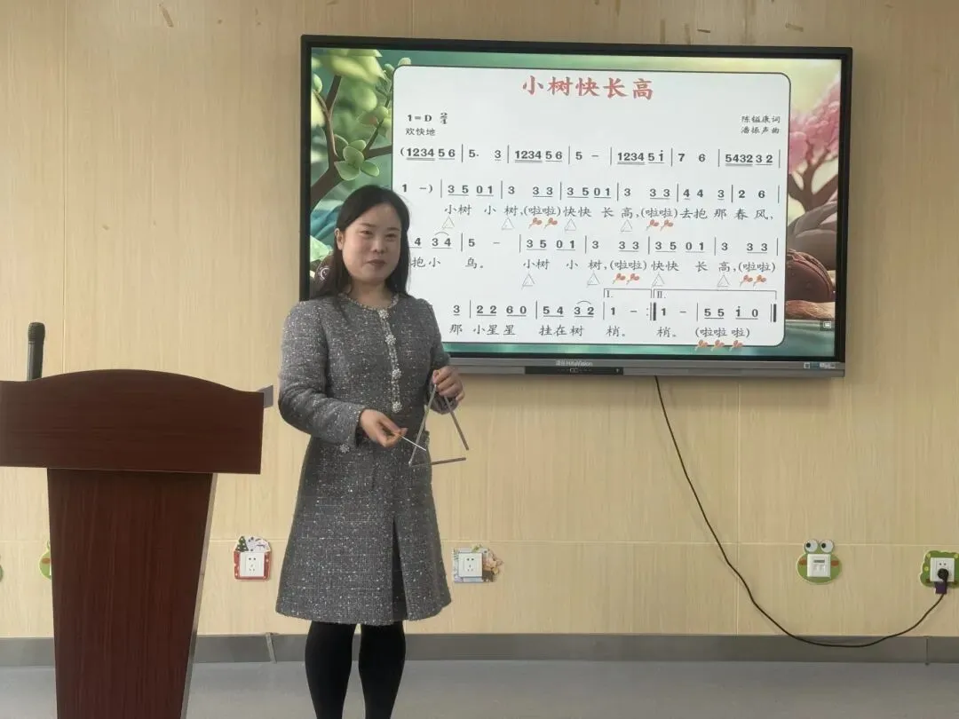 夏庄街道书雨学校吕升霞老师以“小树苗生长”为叙事主线,构建生动有趣的音乐课堂。从聆听感知、分步学唱到创意创编、合作展示,学生在律动游戏、纸杯声势、打击乐伴奏、二声部合唱等丰富活动中,轻松掌握节奏、休止符等乐理知识。课堂融入塞罕坝绿色育人故事,让护绿爱绿的信念伴随歌声浸润童心,打造有温度、有美感、有力量的高品质音乐课堂。