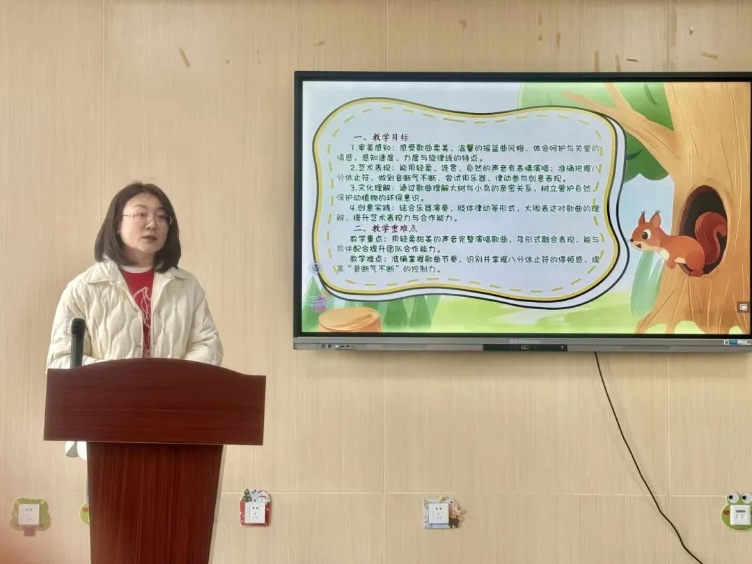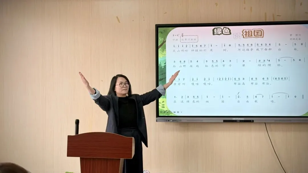 夏庄街道黄埠小学池艳老师以“小小绿色歌唱家·唱响祖国春之韵”为情境,以“绿色合唱团音乐会”为载体推进阶梯式教学。聚焦核心素养,通过聆听感悟、技巧攻坚、创意创编、合唱展示等环节,帮助学生攻克四分休止符、附点节奏、延音线等演唱难点,在趣味游戏中感受和声魅力。课堂融合器乐伴奏、律动演绎等多元形式,结合“筑绿祖国”主题视频,将环保情怀与家国热爱自然升华,让美育育人价值落地生根。