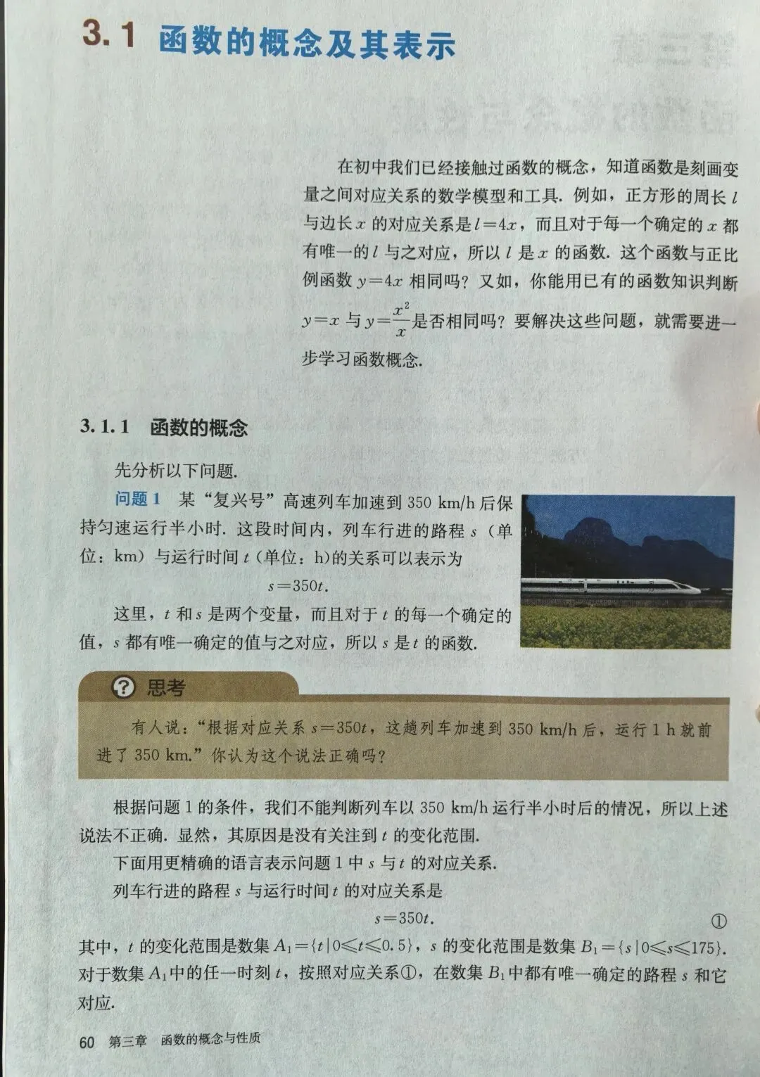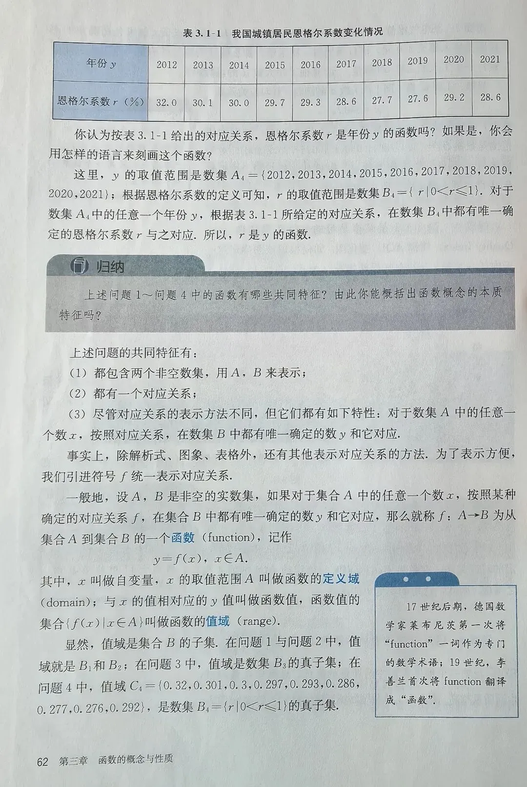 下面以人教版高中《数学必修第一册》为例,对函数概念建构的基本思路作简要剖析。