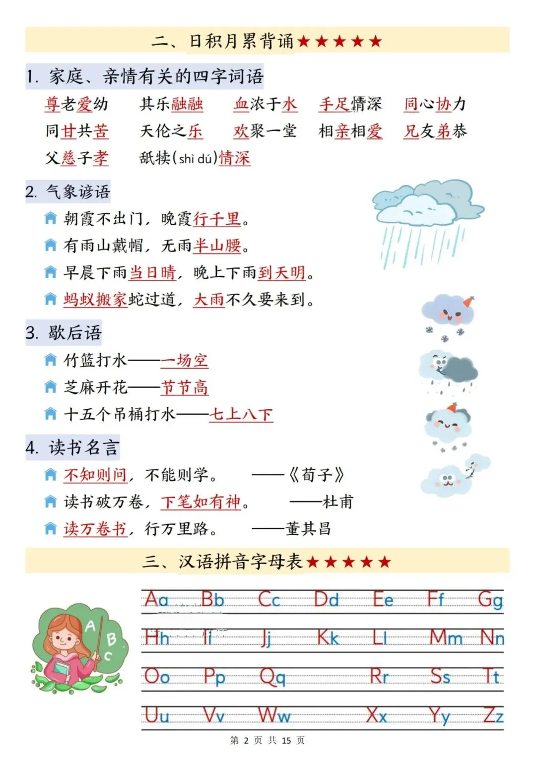 2026年春小学一年级下册语文课本同步寒假预习知识点汇总,内含古诗词、日积月累背诵、汉语拼音字母表、重点词语电子版可打印教辅育儿
