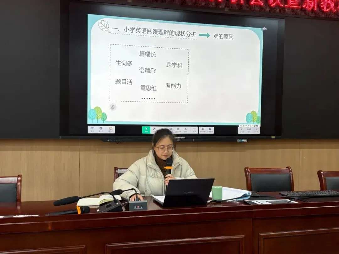 民族小学雷巧巧老师作小学英语阅读能力培养的专题分享,深入分析当前小学英语阅读教学现状。提升学生英语阅读能力,关键要夯实三大基础:语言基础、文化基础和思维基础。雷老师立足教学实践,方法具体可行,为一线教师开展英语阅读教学、助力学生阅读能力提升提供了实用的实践方法。
