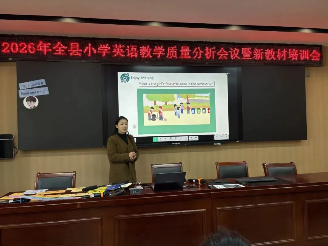 为有序推进新学期教育教学工作,进一步提升全县小学英语教学质量,助力教师更好把握新教材理念与教学要求,3 月 10 日上午,小学英语教学质量分析会暨新教材培训会在研训中心研训教室举行。全县各小学英语教师积极参会,共同聚焦教学提质与新教材,为新学期英语教学工作明确方向、夯实基础。
