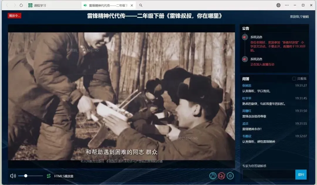 为精准把握新教材教学理念,提升课堂教学实效,3月5日晚,我校全体语文教师齐聚云端,共同观看了由人民教育出版社推出的“新教材讲堂”直播活动——二年级下册《雷锋叔叔,你在哪里》示范课及专家点评。