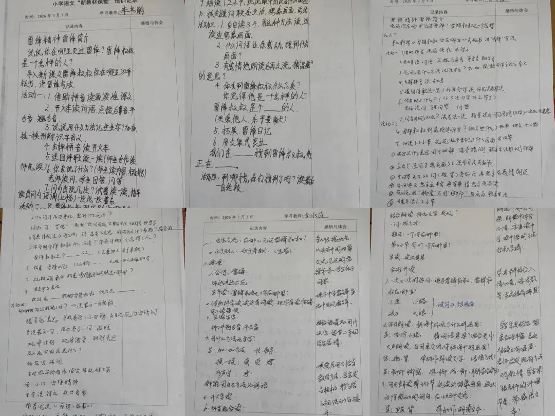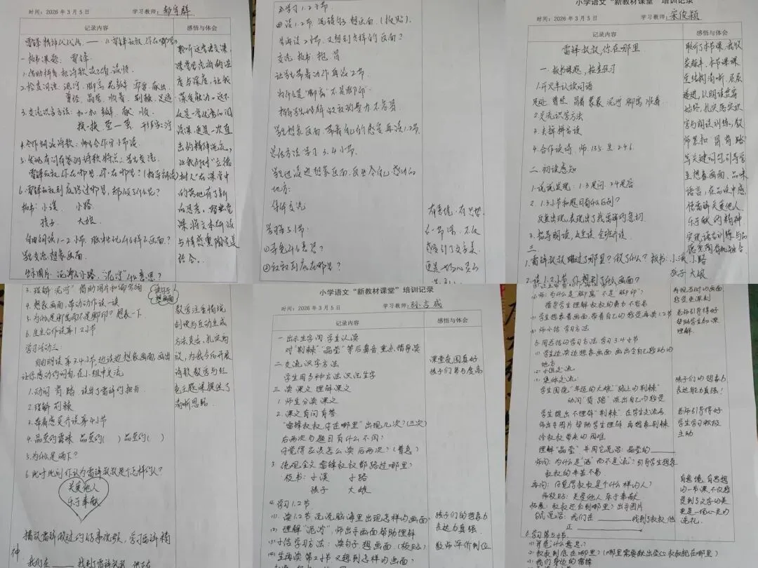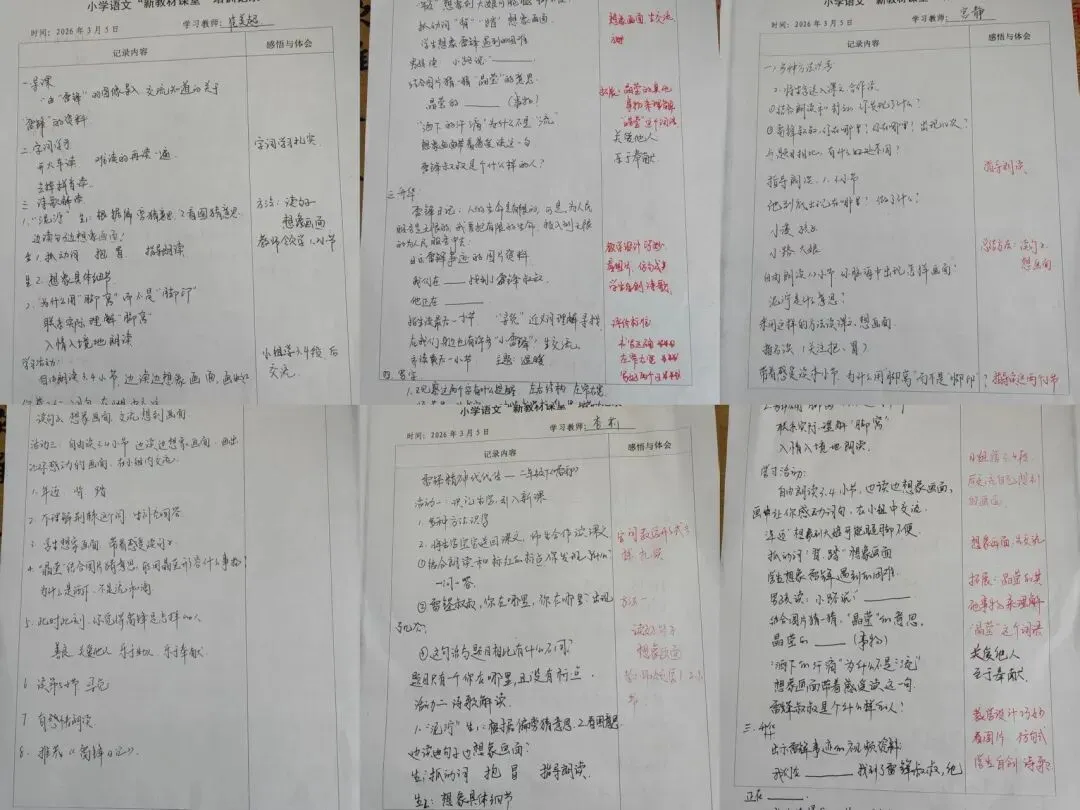 大家边听边思、边记边悟,细致记录课堂设计亮点、教学实施策略、语言训练要点及红色文化融入技巧,认真梳理新教材背景下语文课堂的育人逻辑与实施路径。