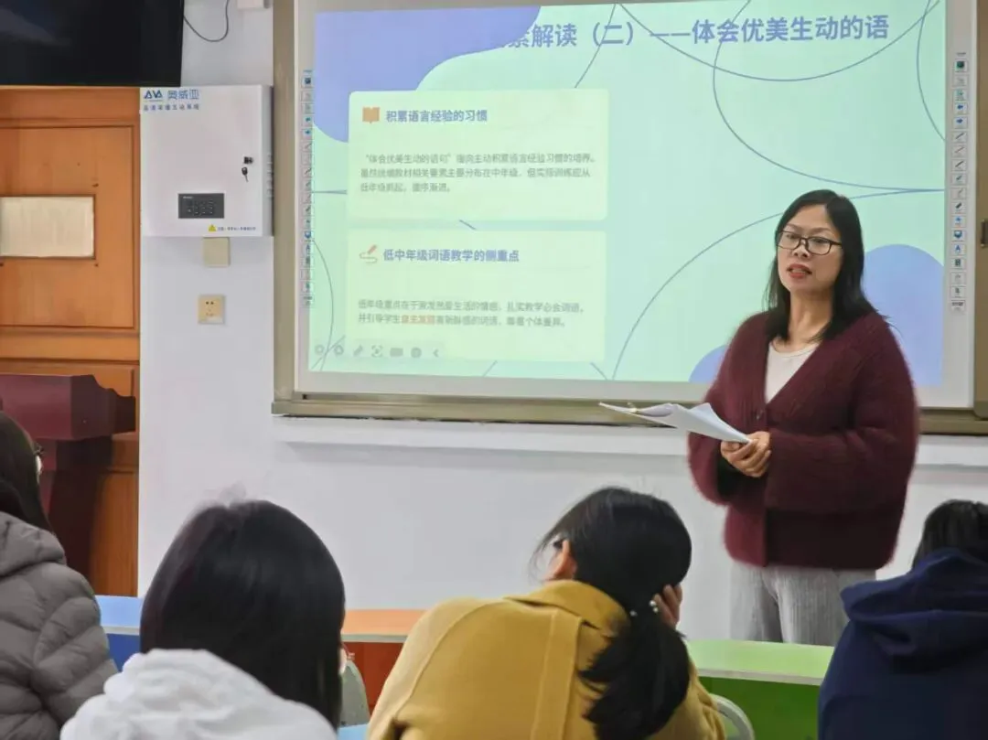 本周,活动进入跨年级交流与集中展示阶段。各学科推选优秀教师代表,分享本组教材解读成果,实现从“个体精研”到“智慧共享”的升华。