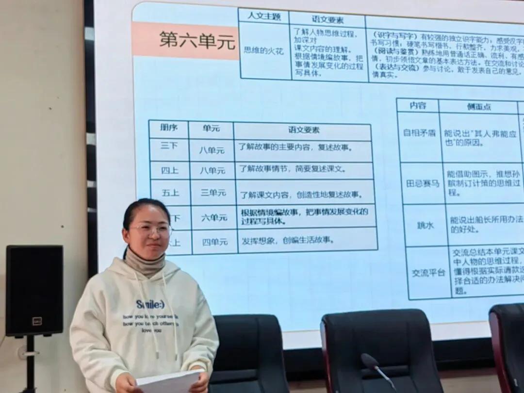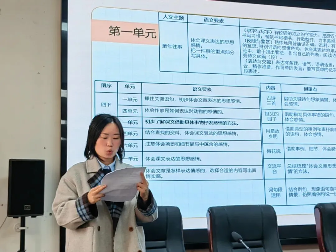 来自低、中、高三个学段的教师代表依次进行分享。低段教师展示了识字教学情境化、游戏化的创新设计;中段教师以单元整体教学为例,分享了紧扣语文要素实施读写结合的实践探索;高段教师则围绕“整本书阅读”与“思辨性阅读与表达”,呈现了对教材的深度开发与拓展思考。案例详实,引发强烈共鸣。