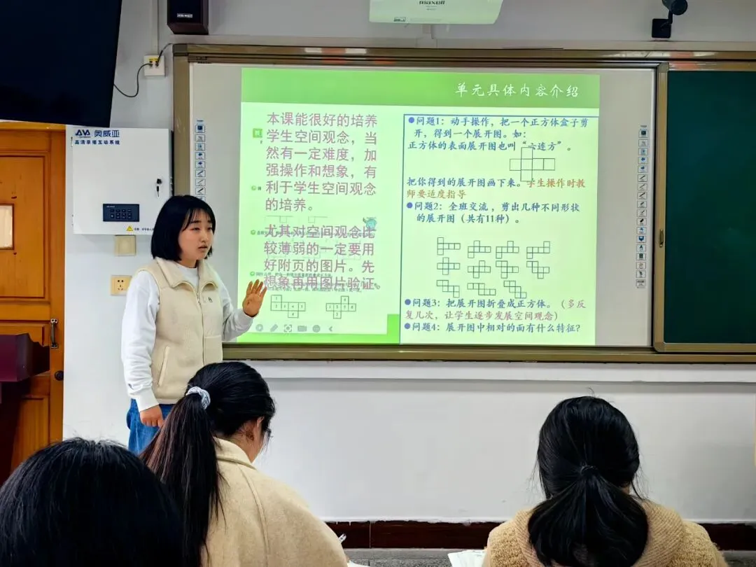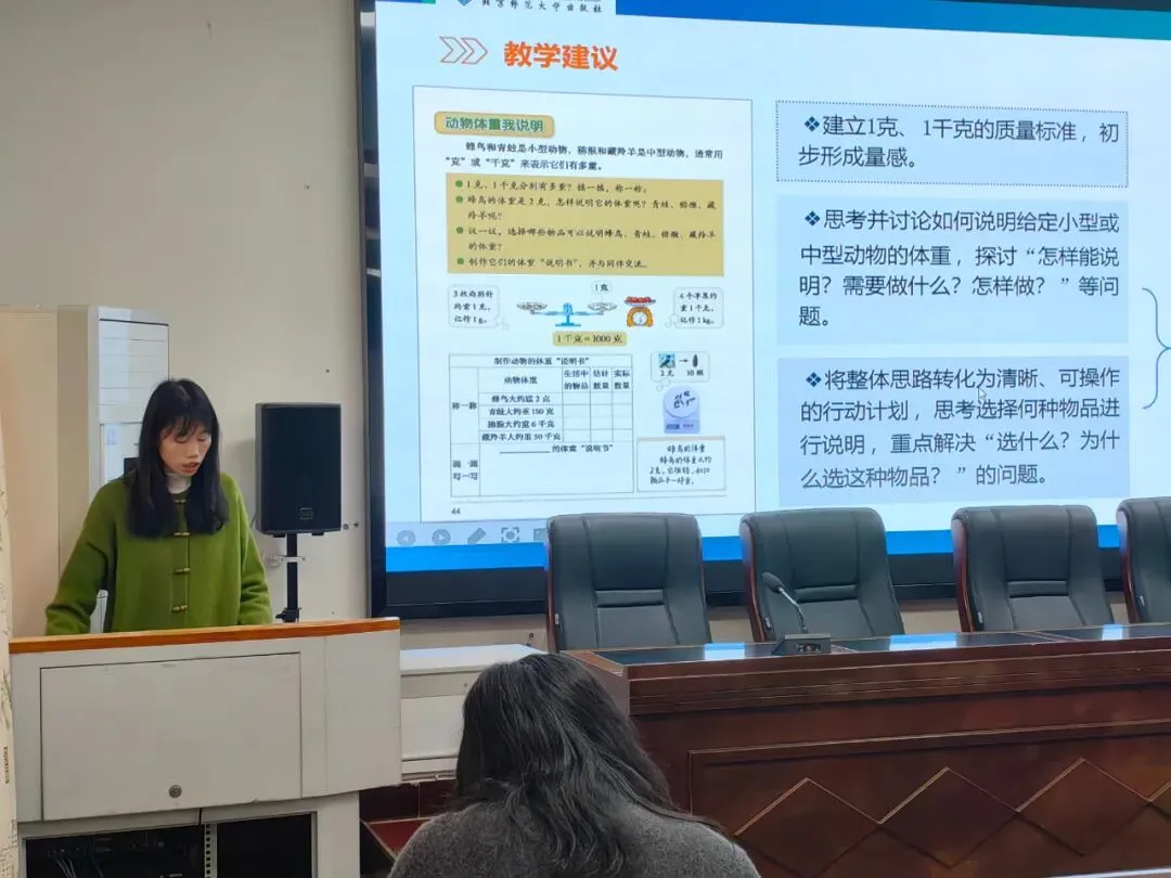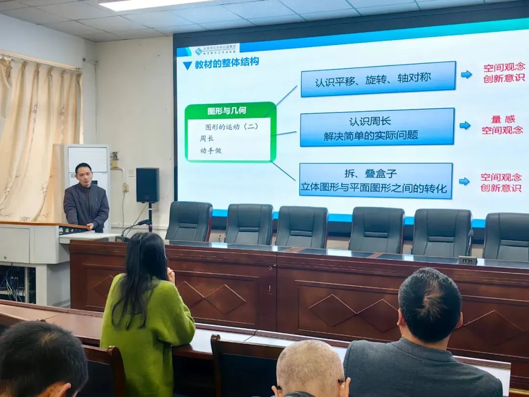 以“聚焦核心素养,理解教材本质”为主题。各年级代表结合具体单元,通过课件、板书设计、习题创编等多种形式,生动阐释了如何在教学中落实数感、量感、运算能力、空间观念等核心素养。分享不仅关注“教什么”,更深入探讨“怎么教”与“为何这样教”,体现了对教学内容的深刻把握。