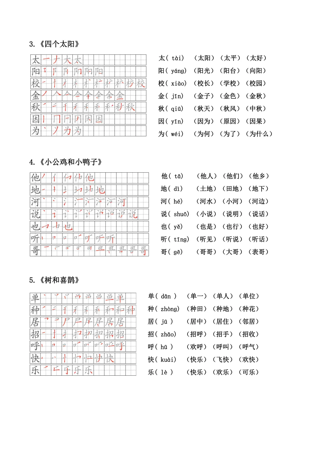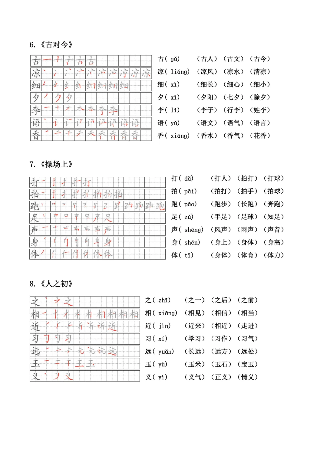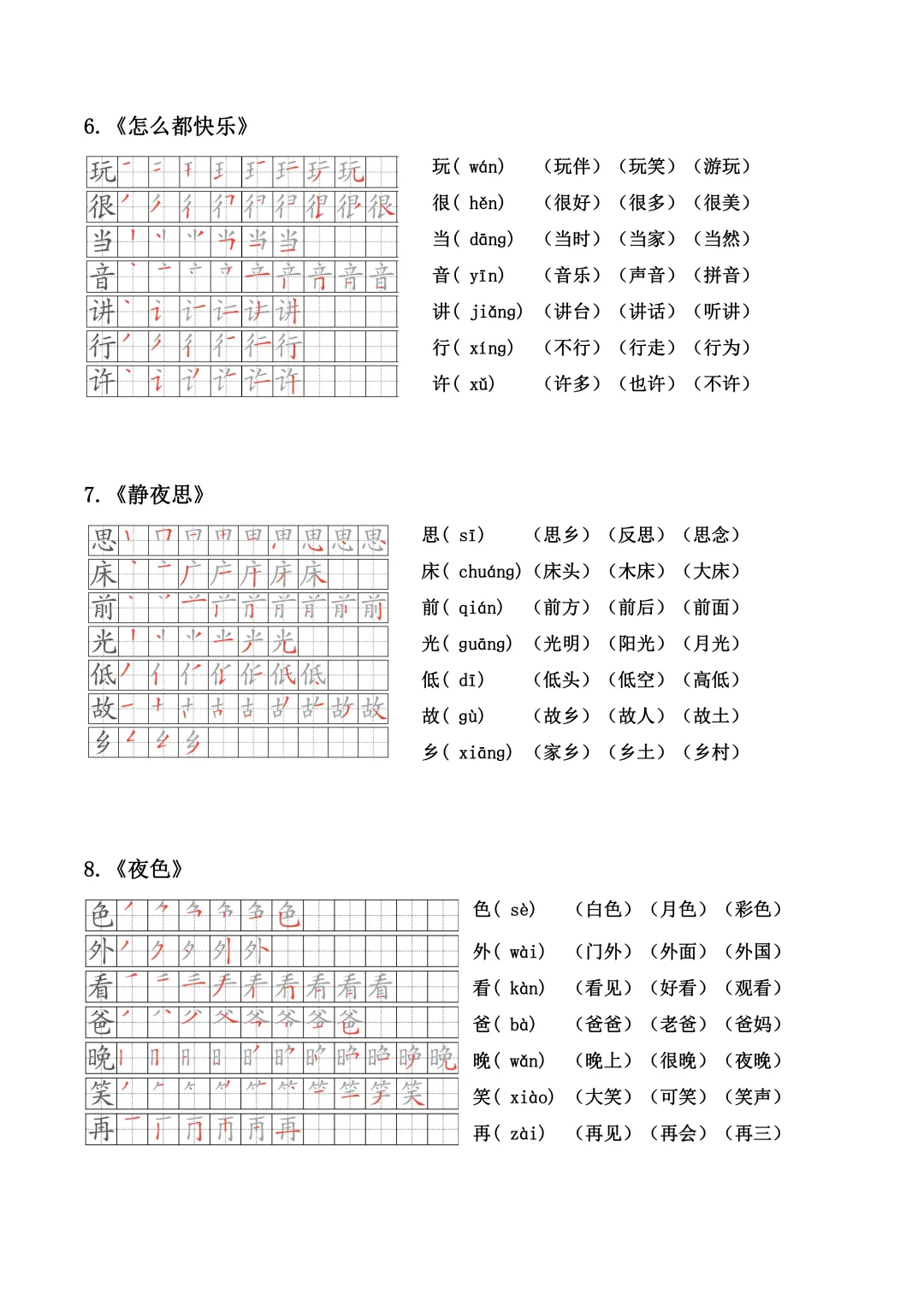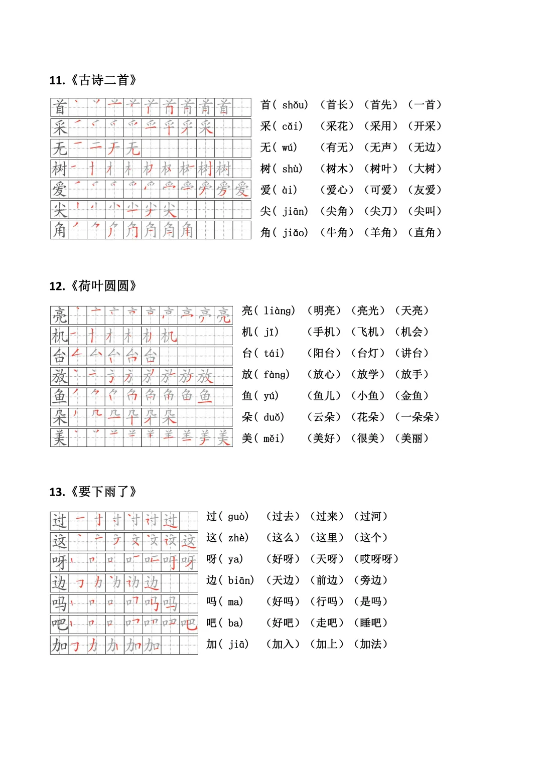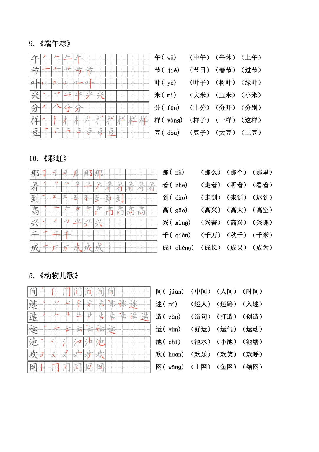 小学语文一年级下册生字笔顺、拼音、组词(课本贴)全册(电子版可打印+免费下载+学习资源)
