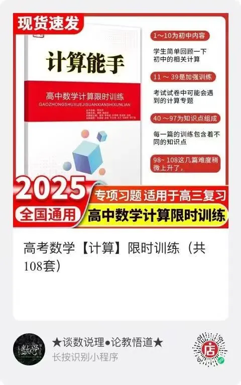 高中生如果要进行计算练习,不应该是加减乘除,整式分式计算了,而是应该去结合题型、结合特定的条件结构进行练习,提升解题的整合度。