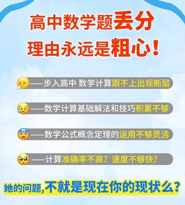 但计算也不是整个数学的全部,还有概念理解、逻辑推理、数学建模等很多方面,不要只盯着计算,忽视了其他能力的培养。