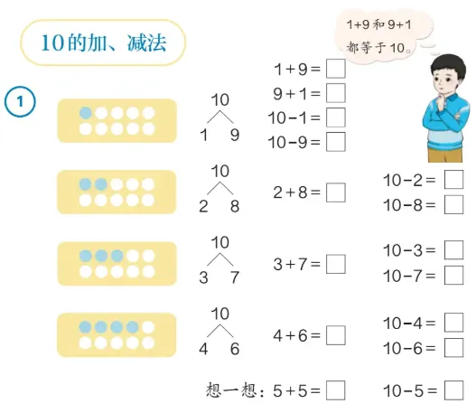 比如提前进行10以内数的分解与组合练习;比如通过”找朋友”游戏熟悉凑十的数对,比如使用小棒、计数器等教具,直观感受”满十进一”,比如可以让孩子记背口诀。