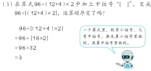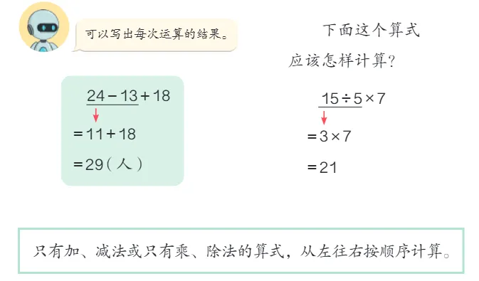 仅以计算而言,三个内容——混合运算,学生开始逐步基础比较复杂的计算式子,涉及到多项、多步、多种类型,这与之前的计算相比较开始从单线程变成多线程,学生开始接触运算级,是后期四则运算的基础;