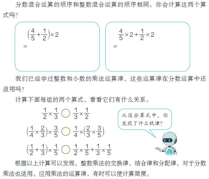 这几个内容在小学计算中都属于非常重要的内容,需要多加练习,以保证顺利适应,顺带一提,可以认为这里的分数和混合运算是初一有理数计算的发轫点。