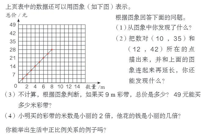 比如人教版六下这道题目,其实已经出现了正比例函数图像的身影。