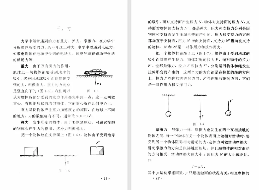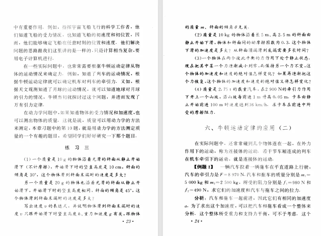 这章的内容不仅仅补充了乙种本中没有保留到本套教材必修的内容,还有不少来自甲种本的内容。补充这一章的内容后,这套教材受力分析和牛顿运动定律的要求,与甲种本基本持平了,比乙种本要求还高一些。