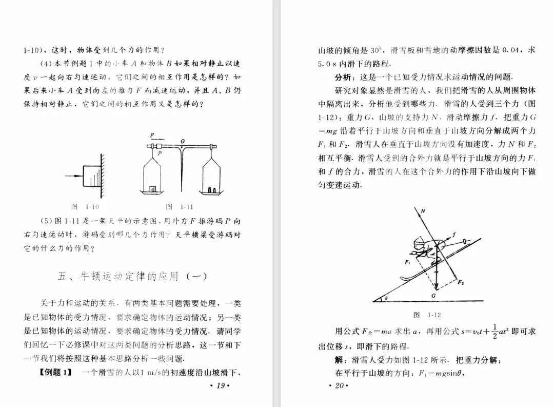 接下来两个小节加强牛顿运动定律的训练,一些例题来自甲种本,一些例题来自乙种本。