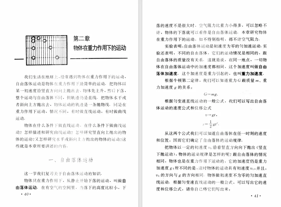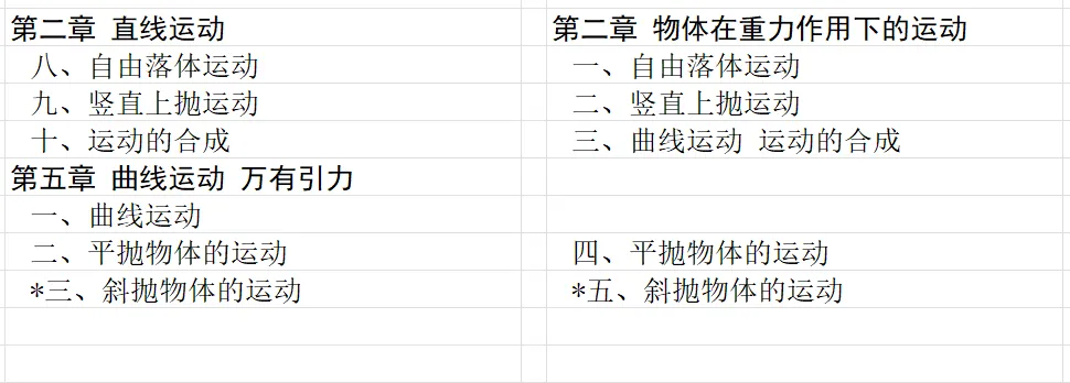 本章第一节回顾必修部分的自由落体运动,后面的内容基本上来自乙种本,不做详细介绍了。下面的表格中,左边一列是乙种本的目录,右边一列是本章内容。