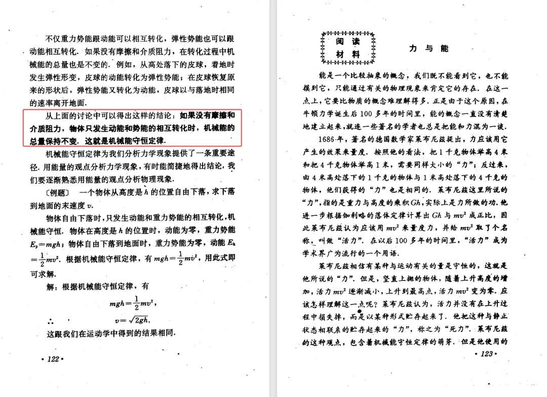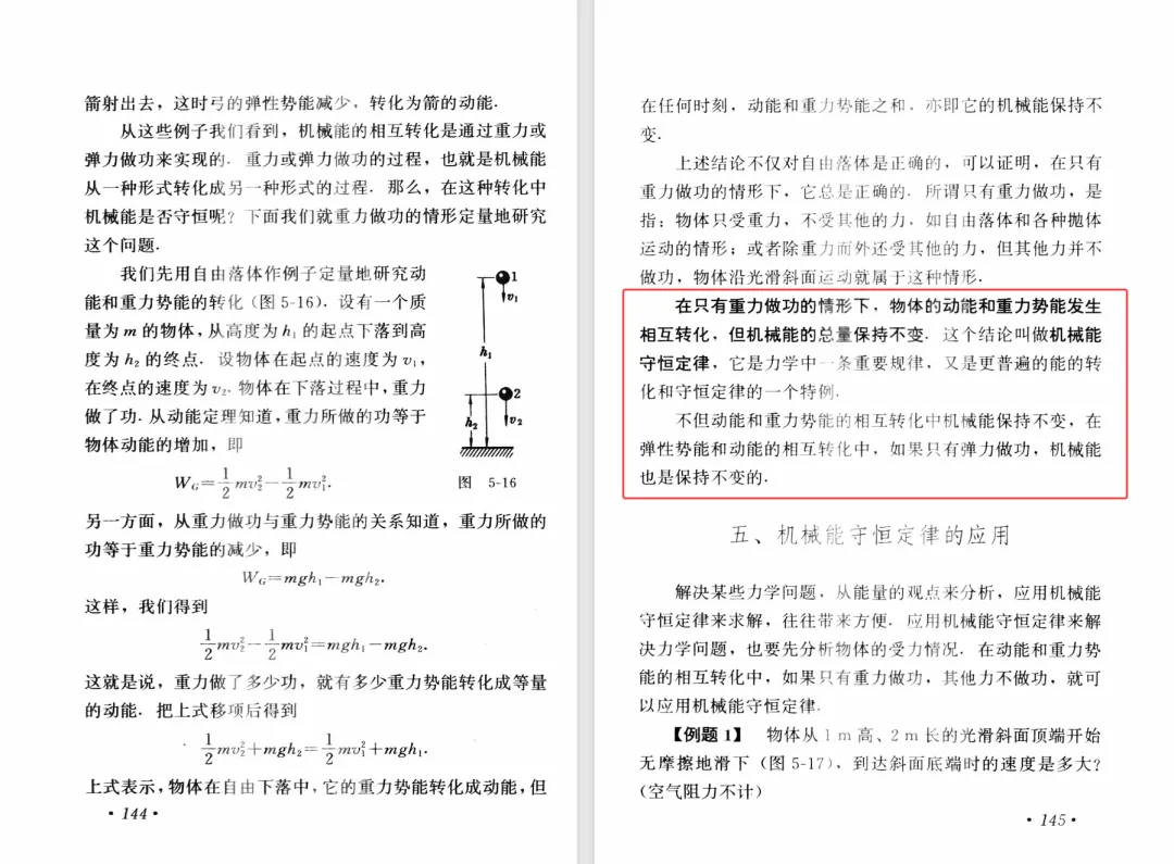 需要注意的是,机械能守恒定律,在甲种本和乙种本,以及本套教材的必修和选修中的表述,存在两个版本。