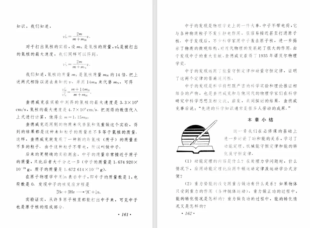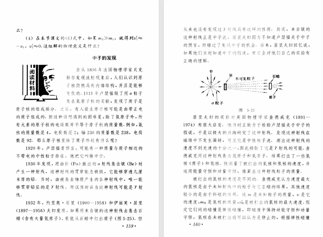 弹性碰撞后介绍中子的发现。这样的编排与十年制高中物理相同。