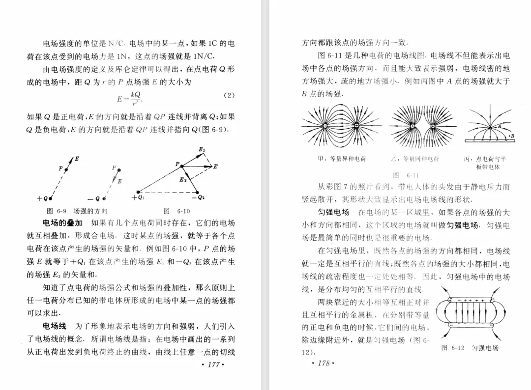 第二节除了回顾电场和电场强度的概念,还补充了乙种本中电场和电力线两节中在本套教材必修部分被删去的内容。