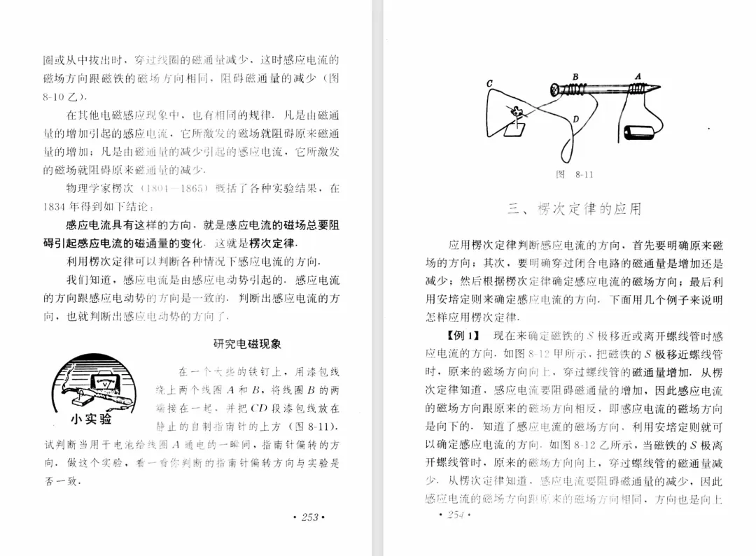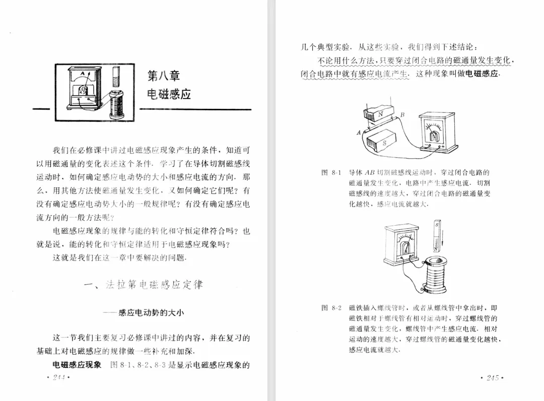本章第一节第一个小标题给出了产生电磁感应现象的三个实验,它们来自甲种本。我比较奇怪,必修部分已经给出了乙种本中产生电磁感应现象的几个实验,为什么到了选修还要按甲种本再展示一遍实验。