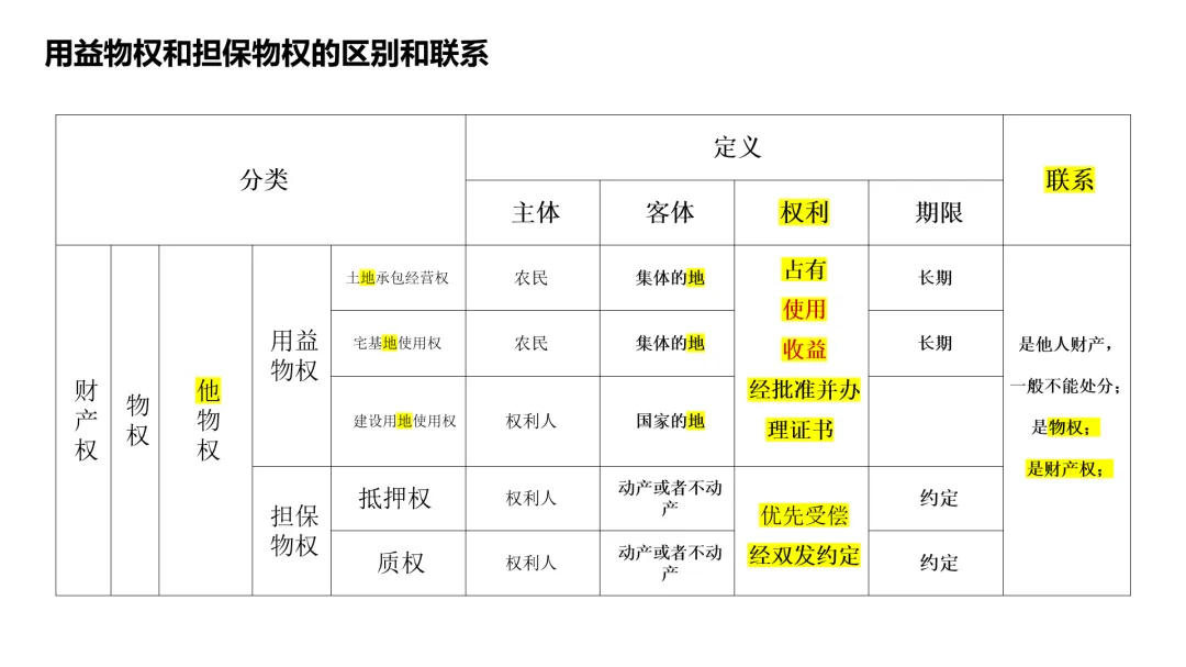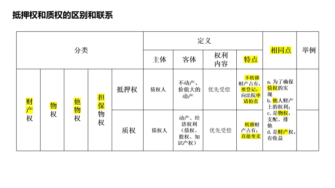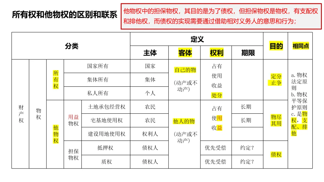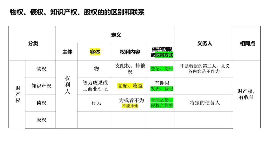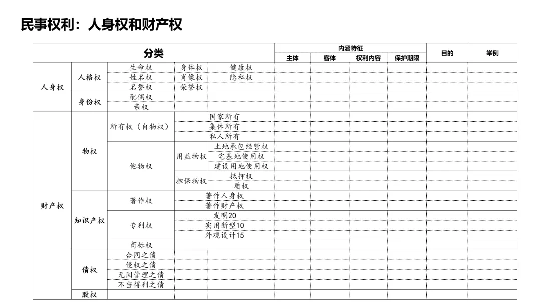 我们民事法律关系有三要素:主体、客体、内容,请从这三个方面来学习和把握各项财产权,