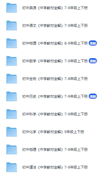 >【免费分享】初中全科目《中学教材全解》7-9年级上下册语文数学英语物理化学地理生物历史道法科学-电子版PDF可打印