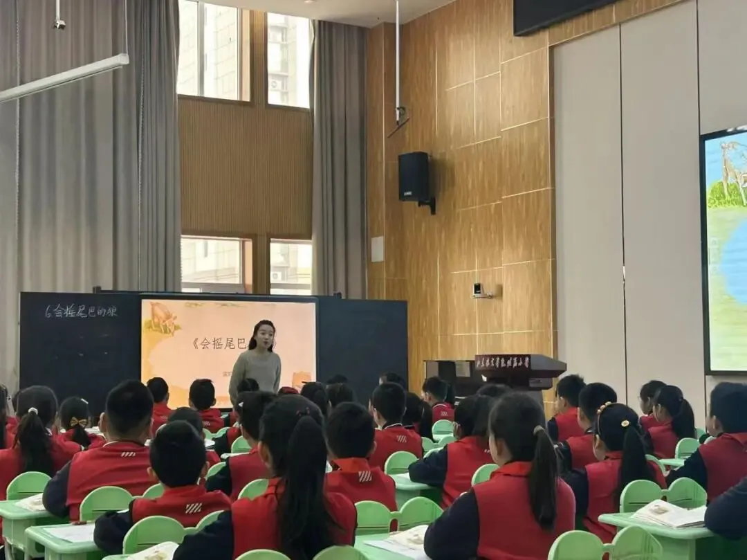 课堂是教学的主阵地,也是教研研讨的核心起点。活动伊始,宁芳芸老师带来三年级下册寓言故事《会摇尾巴的狼》精彩课例展示。宁老师的课堂教学思路清晰,结构层次分明,紧扣寓言教学特点与三年级学生学情,以朗读指导为核心展开教学。课堂上,她先带领学生整体梳理文本结构,搭建起清晰的学习框架;随后聚焦课文中的四段对话,细致扎实地传授朗读方法,引导学生在一遍遍朗读中实践运用,揣摩角色情感。在学生掌握方法后,宁老师大胆放手,让学生自主运用所学朗读后两段对话,自主把控语气、体悟情感,充分践行了以读代讲、以读悟情的教学理念。整堂课指导细致、点拨精准,学生在沉浸式朗读中读懂故事、感知形象,朗读能力与文本理解能力得到有效提升,为在场教师呈现了一节扎实、高效的寓言教学示范课。